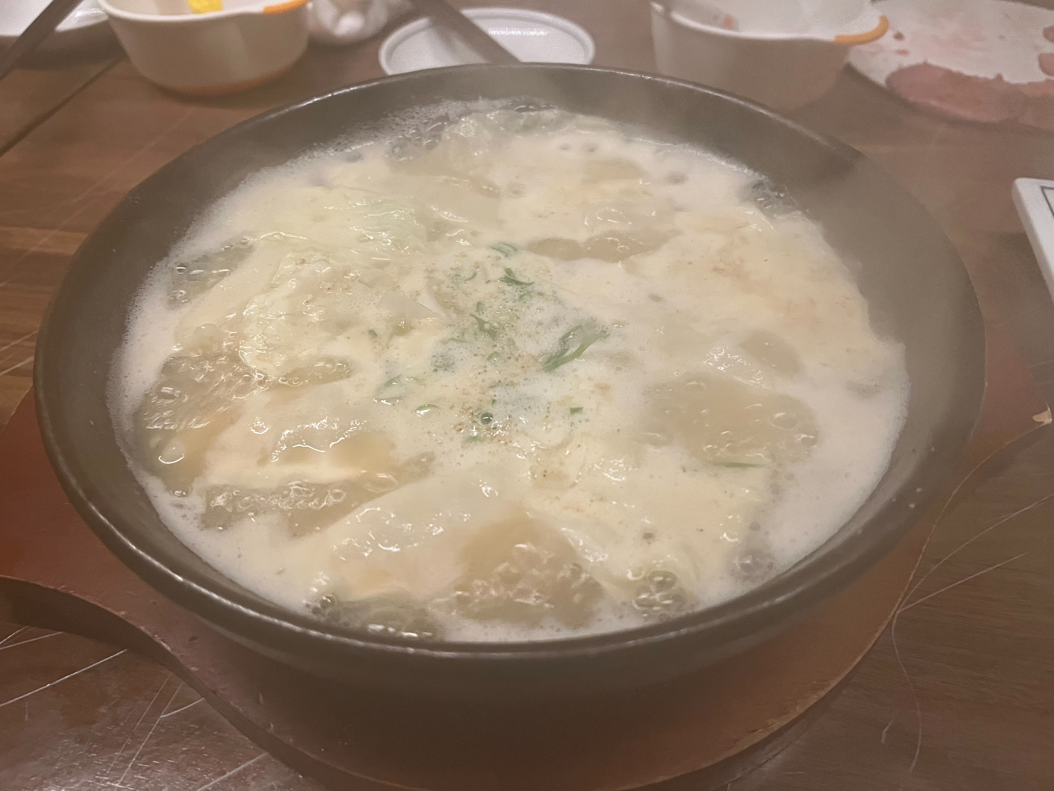 滿滿韭菜與高麗菜堆成小山,湯底香濃帶蒜味,牛腸Q彈油潤,湯頭越煮越濃郁,暖胃又過癮。