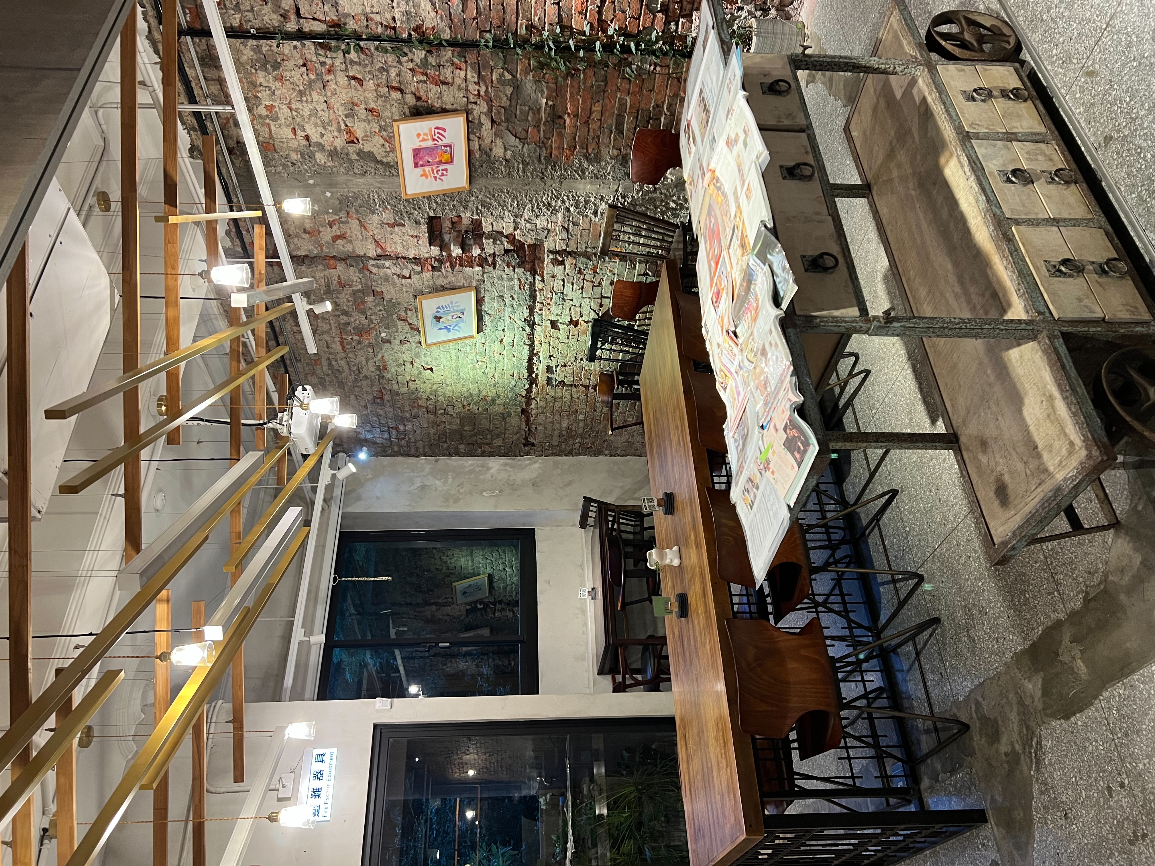 走進店裡的瞬間真的有小驚喜。內裝以原始紅磚牆、木質桌椅、工業風鋼架與大量光線堆疊,有種很輕鬆、很舒服的藝術感。最讓我意外的是,二樓空間超大,完全是下午文青喝茶、讀書、畫畫的理想場地。