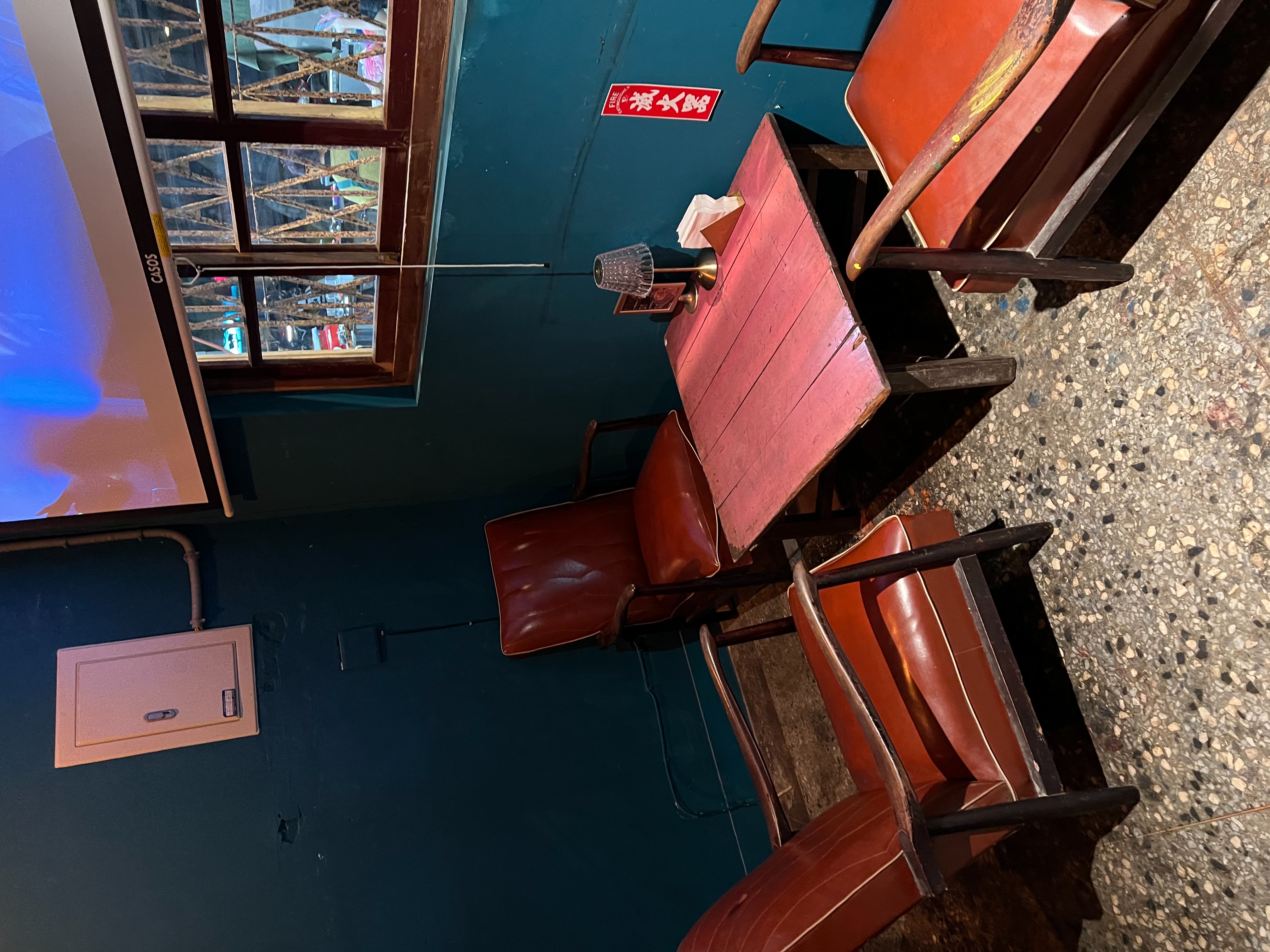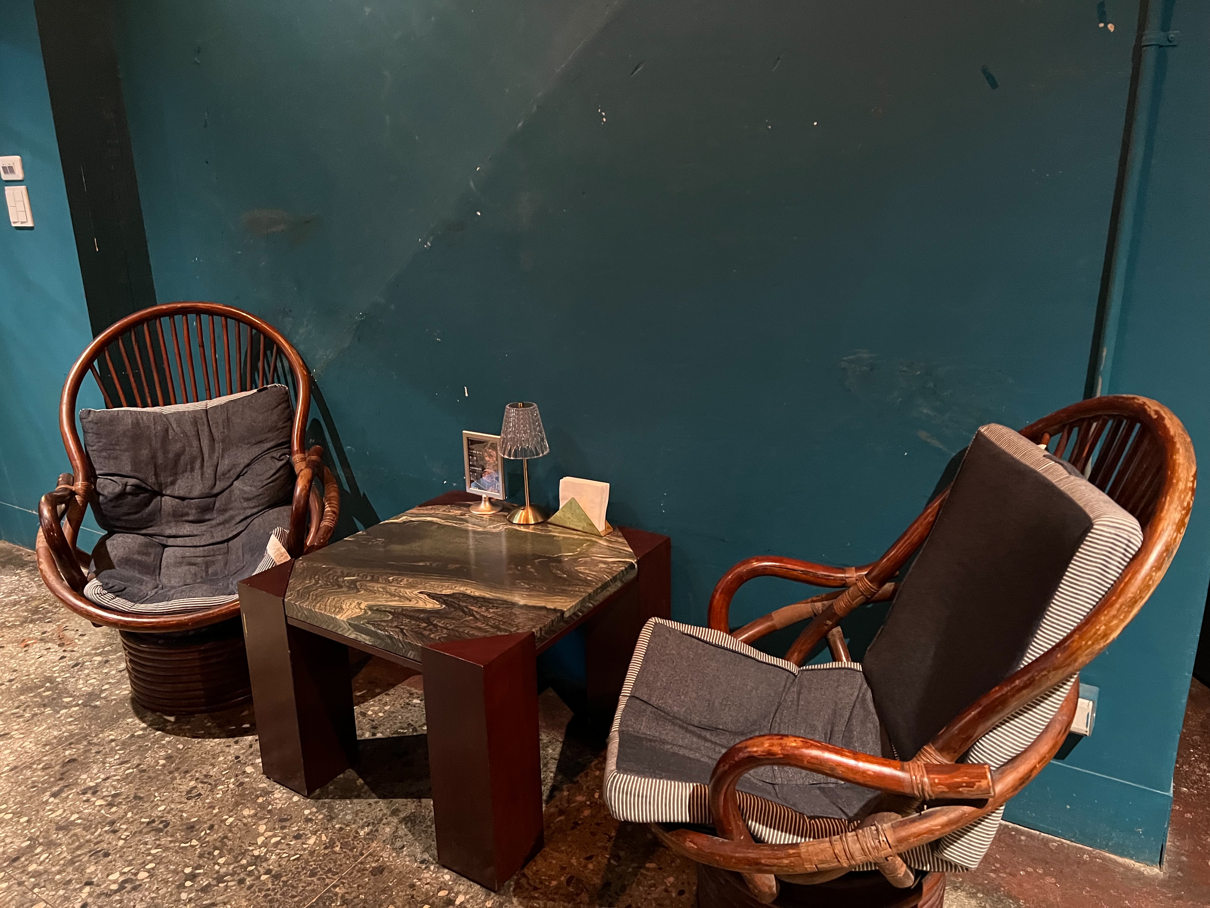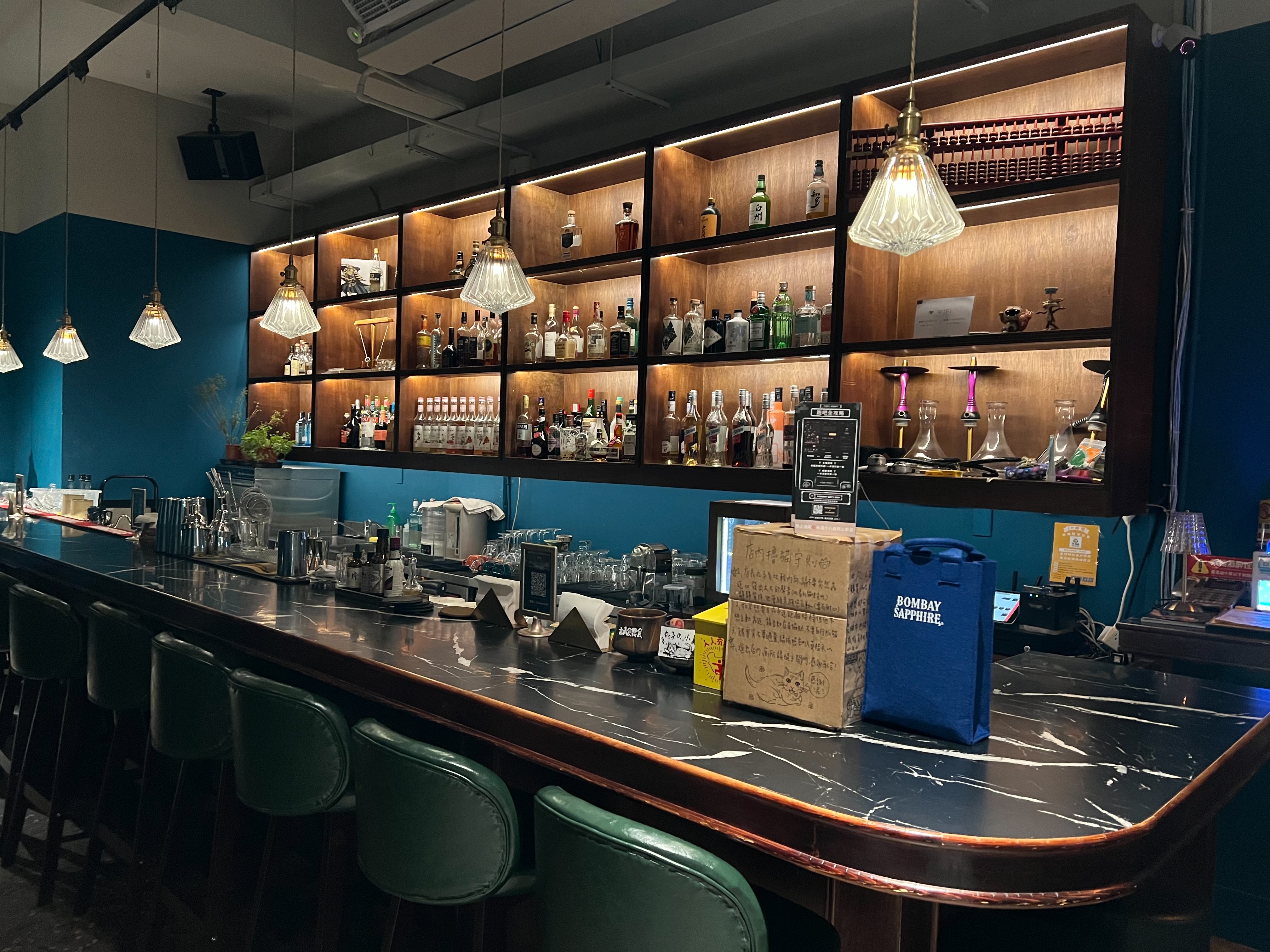 走進店內,瞬間把城市的喧鬧隔離在門外。深藍色大面牆搭配暖色吊燈,桌椅是復古木質傢俱,有種歐美慵懶又帶點文青感的空間氛圍。