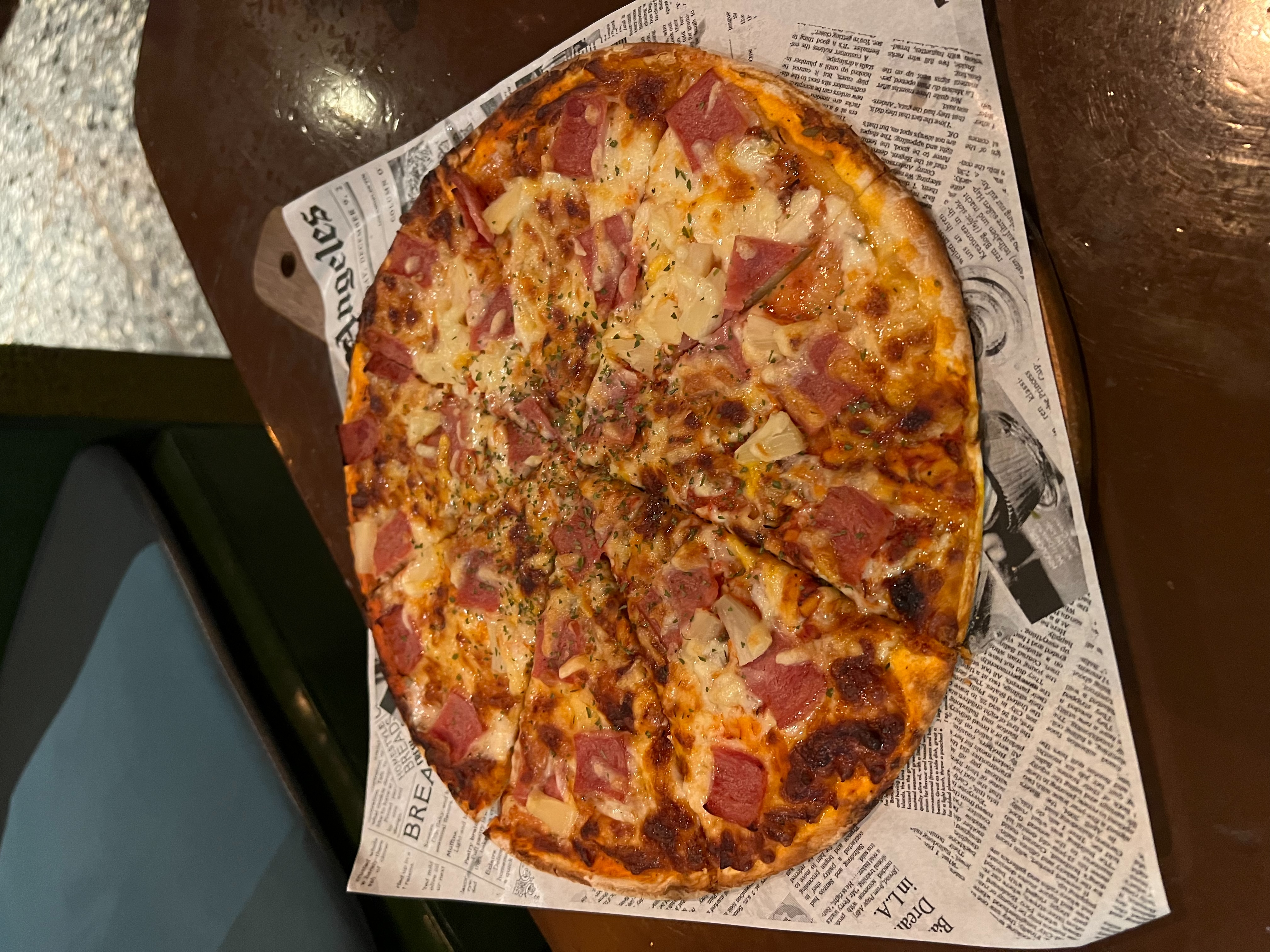 餅皮屬於薄脆型,邊邊微焦很香。起司量足、鳳梨酸甜明顯,搭上鹹香火腿就是經典夏威夷組合,不會膩口。適合邊聊天邊配著吃的一款。