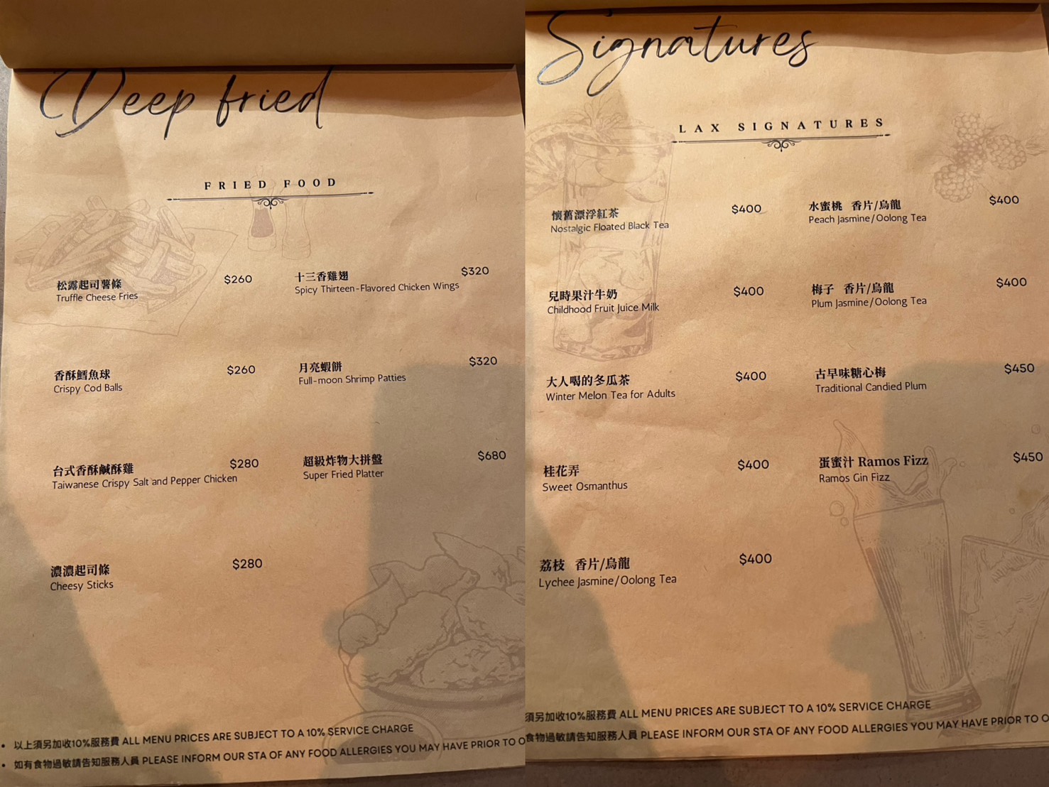 《LAX 慵懶》空間氛圍真的很chill,有種待久也沒負擔的自在。菜色選擇豐富、主食友善、份量也剛好,不會吃不飽,雖然食物不是那種會讓人驚呼的濃重風味,但適合聊天放鬆、小酌的夜晚,加上有店貓陪伴、服務生友善、還能帶毛小孩一起來,整體氛圍真的很像在老宅裡慢慢放鬆的夜晚,越坐越喜歡。