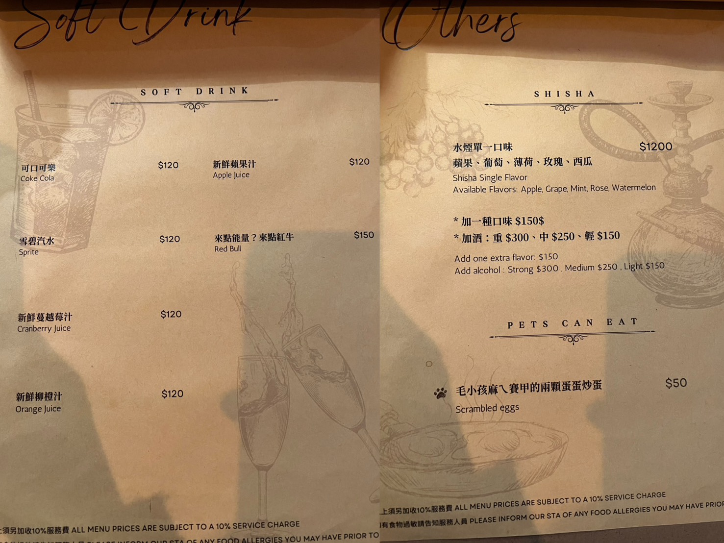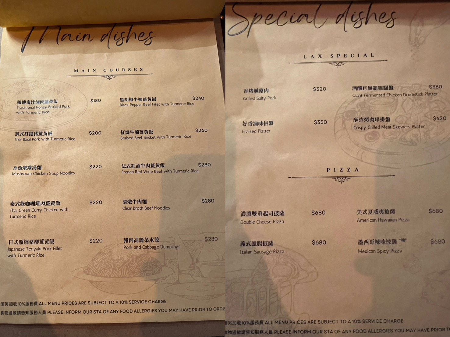 《LAX 慵懶》的菜單選擇比一般餐酒館更「主食取向」,如果是怕吃不飽的人,來這裡完全不用擔心。主食落在 180~280 元之間,想吃麵的、想吃飯的通通有,種類算多。另外他們還有 毛小孩友善餐點,像是可以給寵物吃的炒蛋,蠻貼心的。
