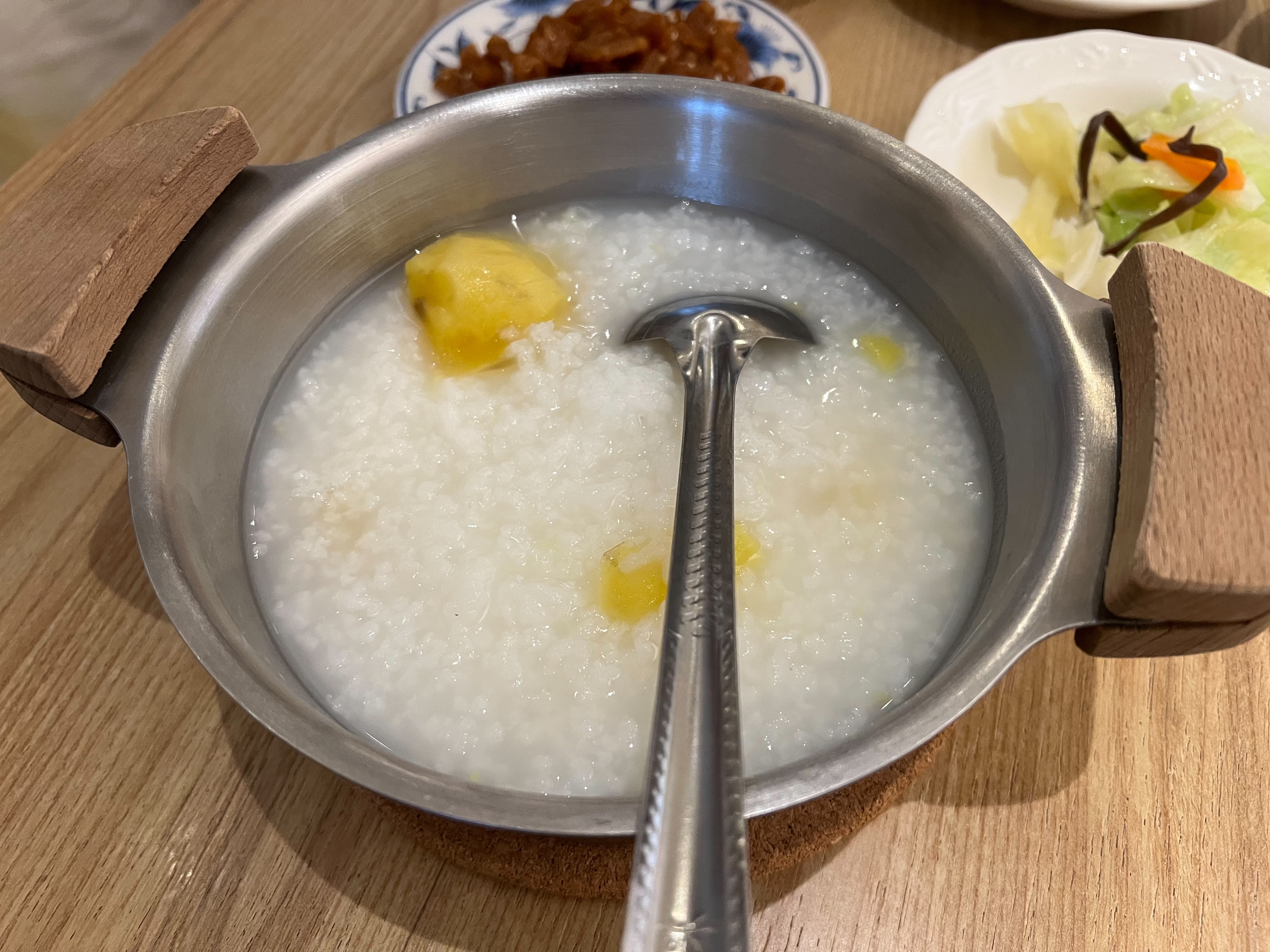 口感綿密帶著淡淡甜味,喝起來溫潤順口,很適合搭配鹹香小菜一起吃。
