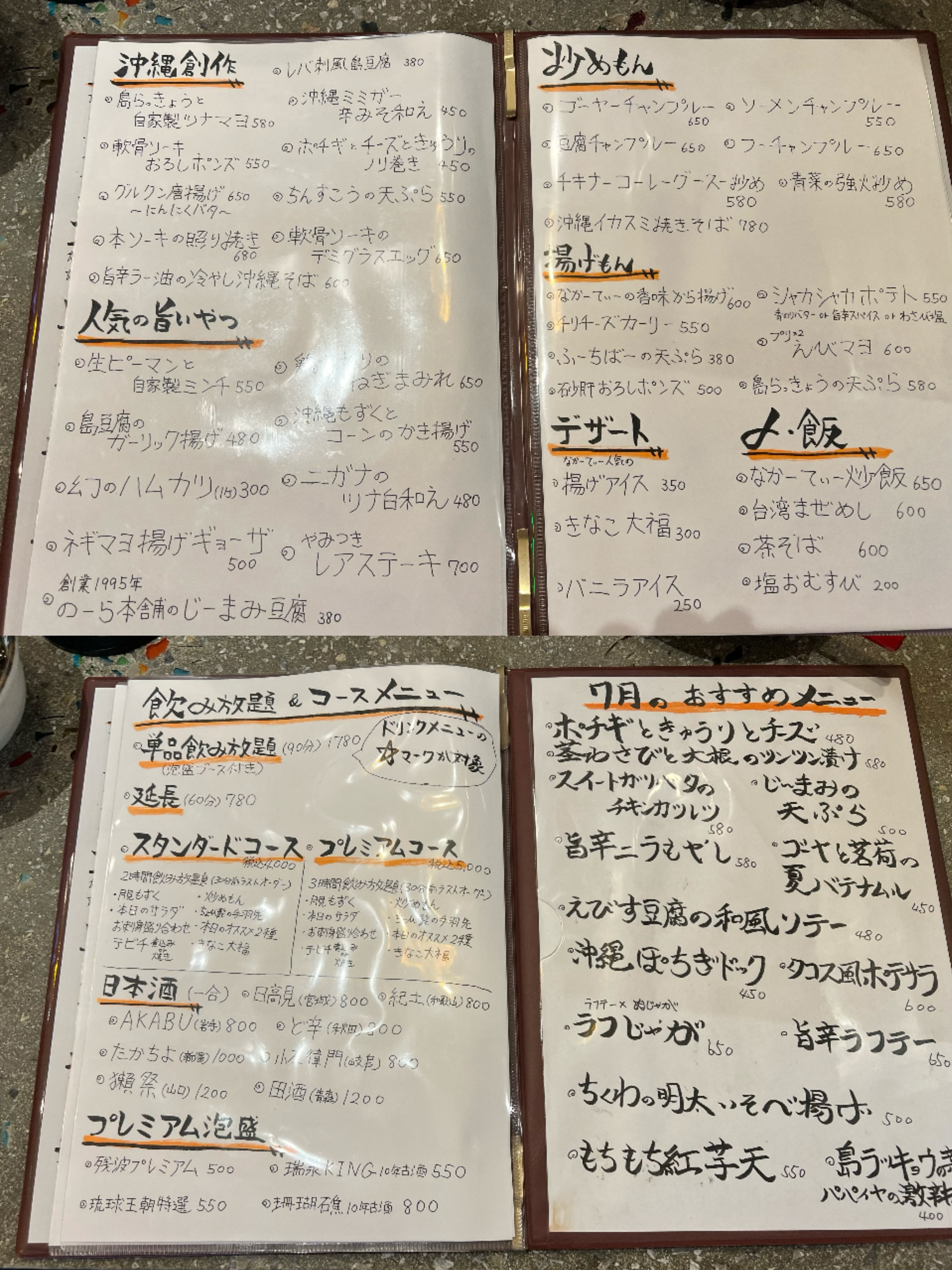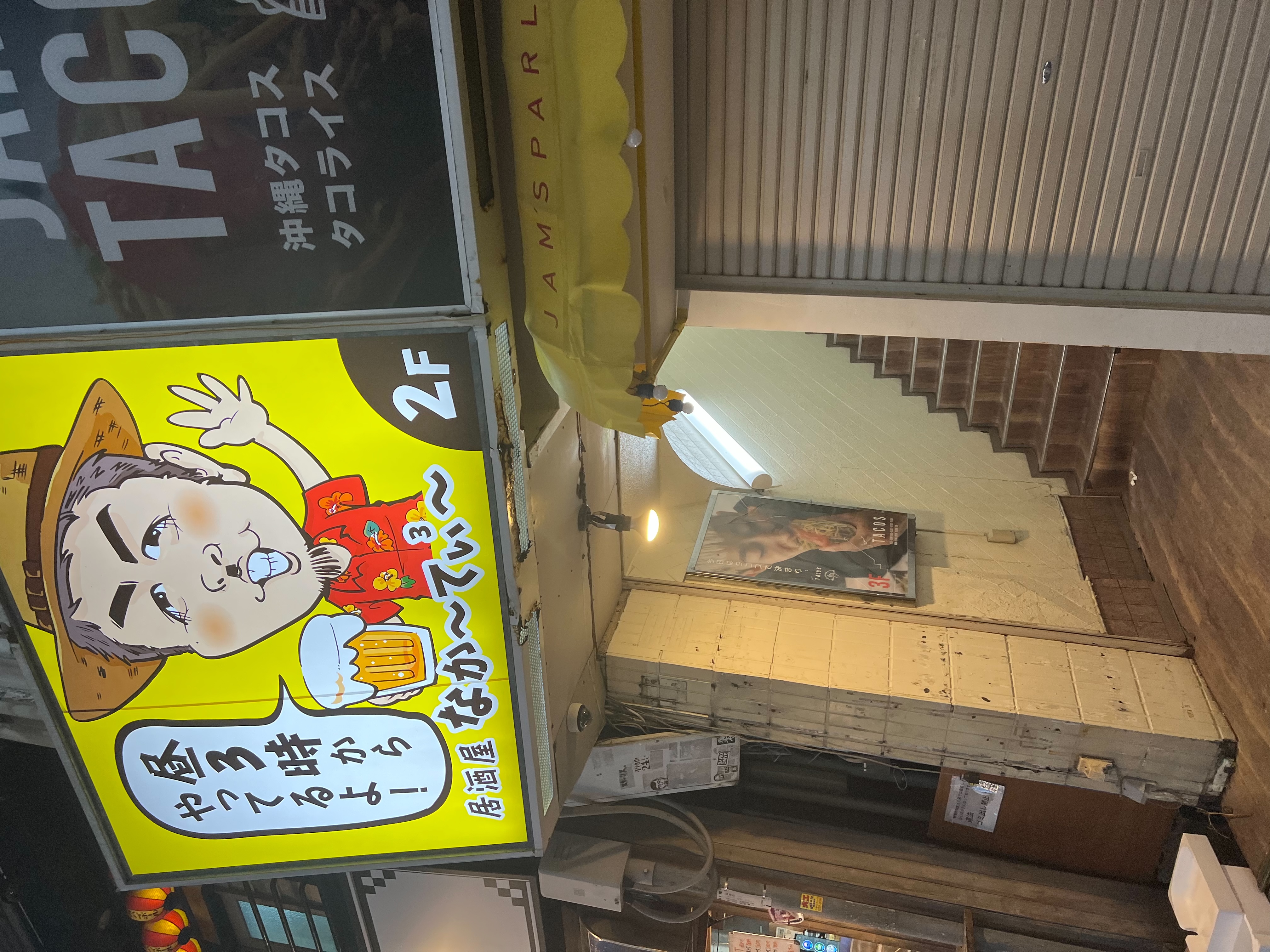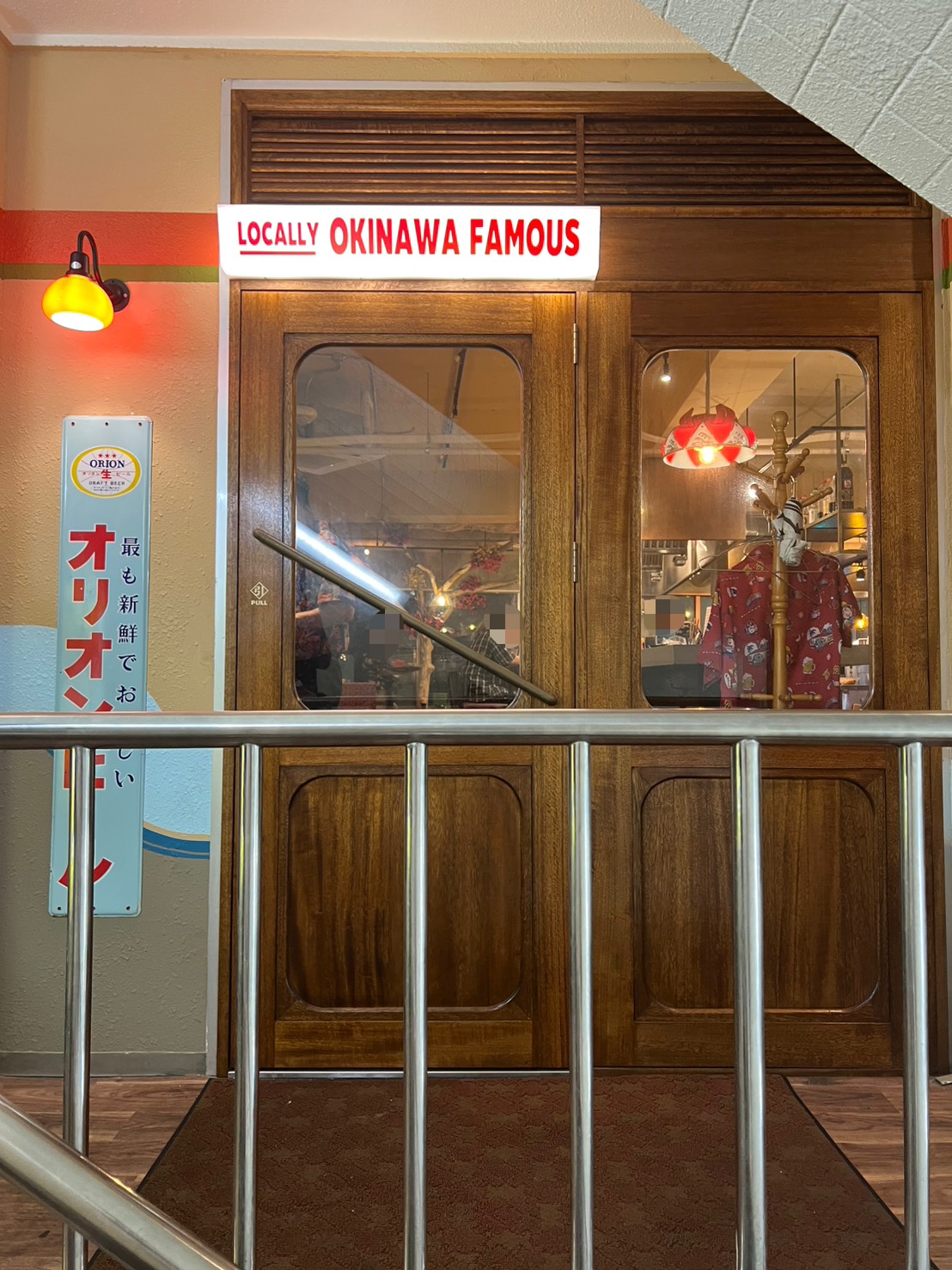 這間《なかーてぃー》是我那天在國際通散步時偶然發現的居酒屋,地點就在主要商圈上、位於二樓,從樓梯上去就能看到木門外觀寫著「LOCALLY OKINAWA FAMOUS」,有種低調又帶點復古的感覺。