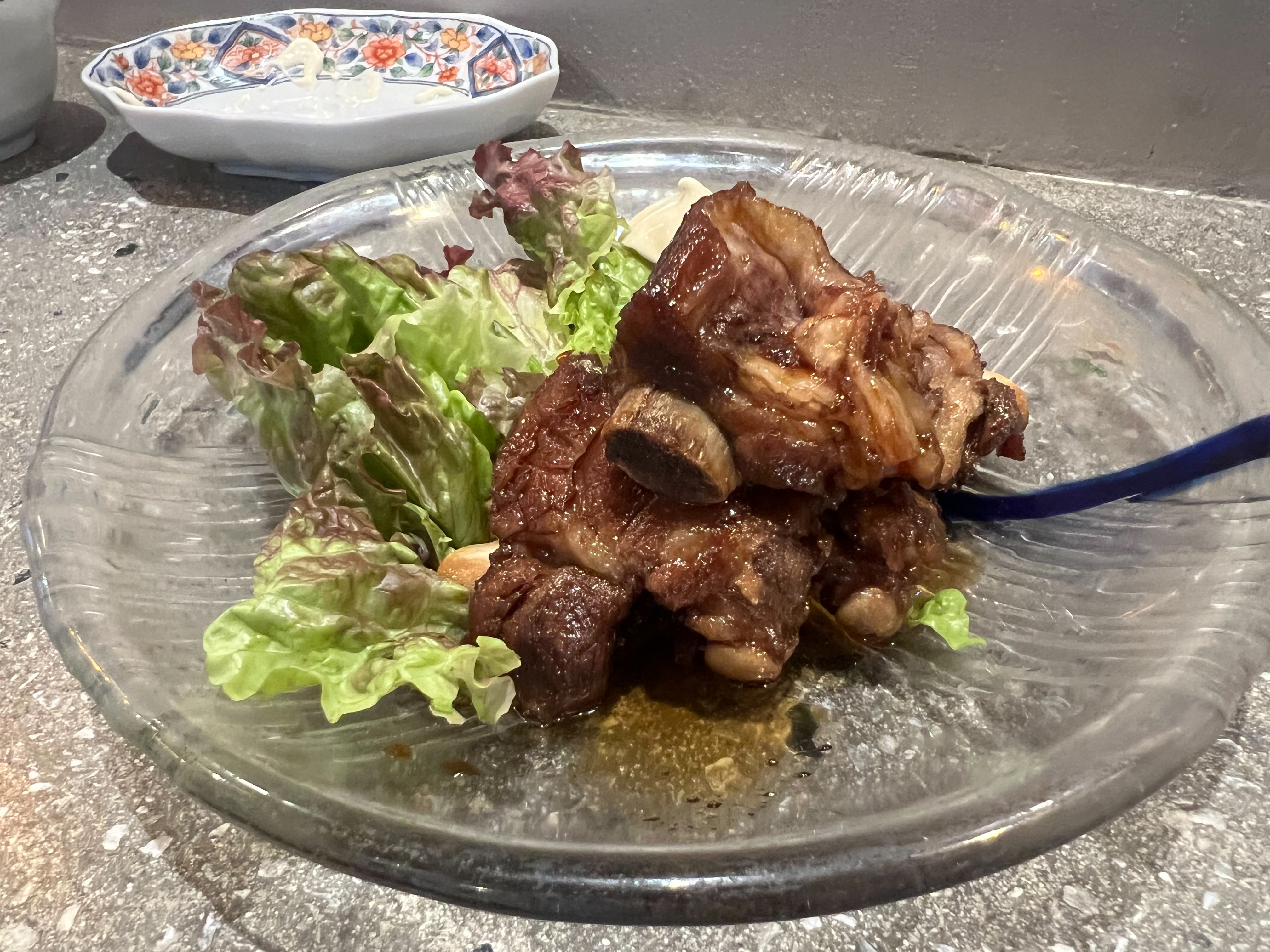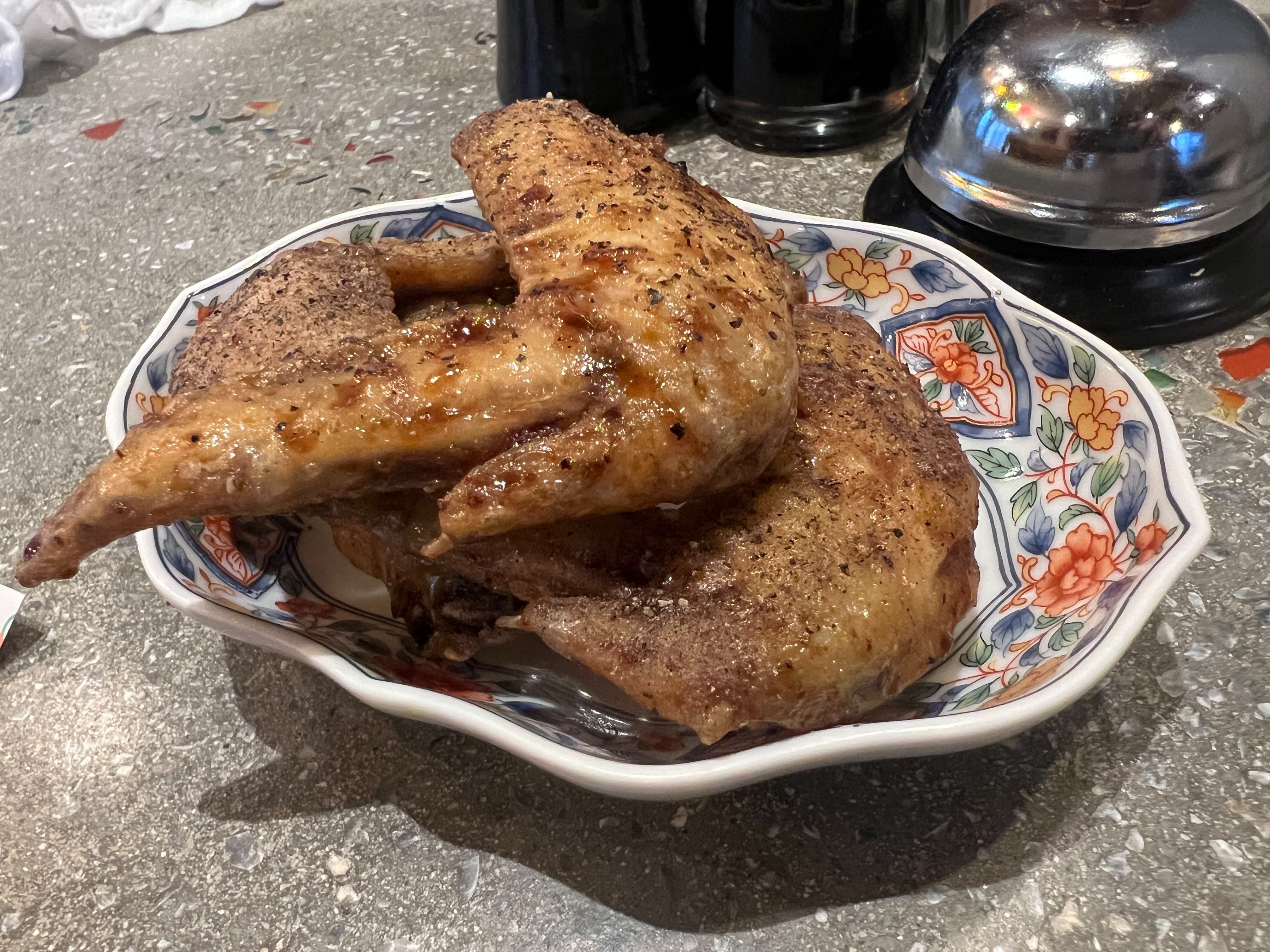 外皮炸得香酥、肉質多汁,邊吃邊啃超過癮,調味偏甜中帶鹹,很下酒。