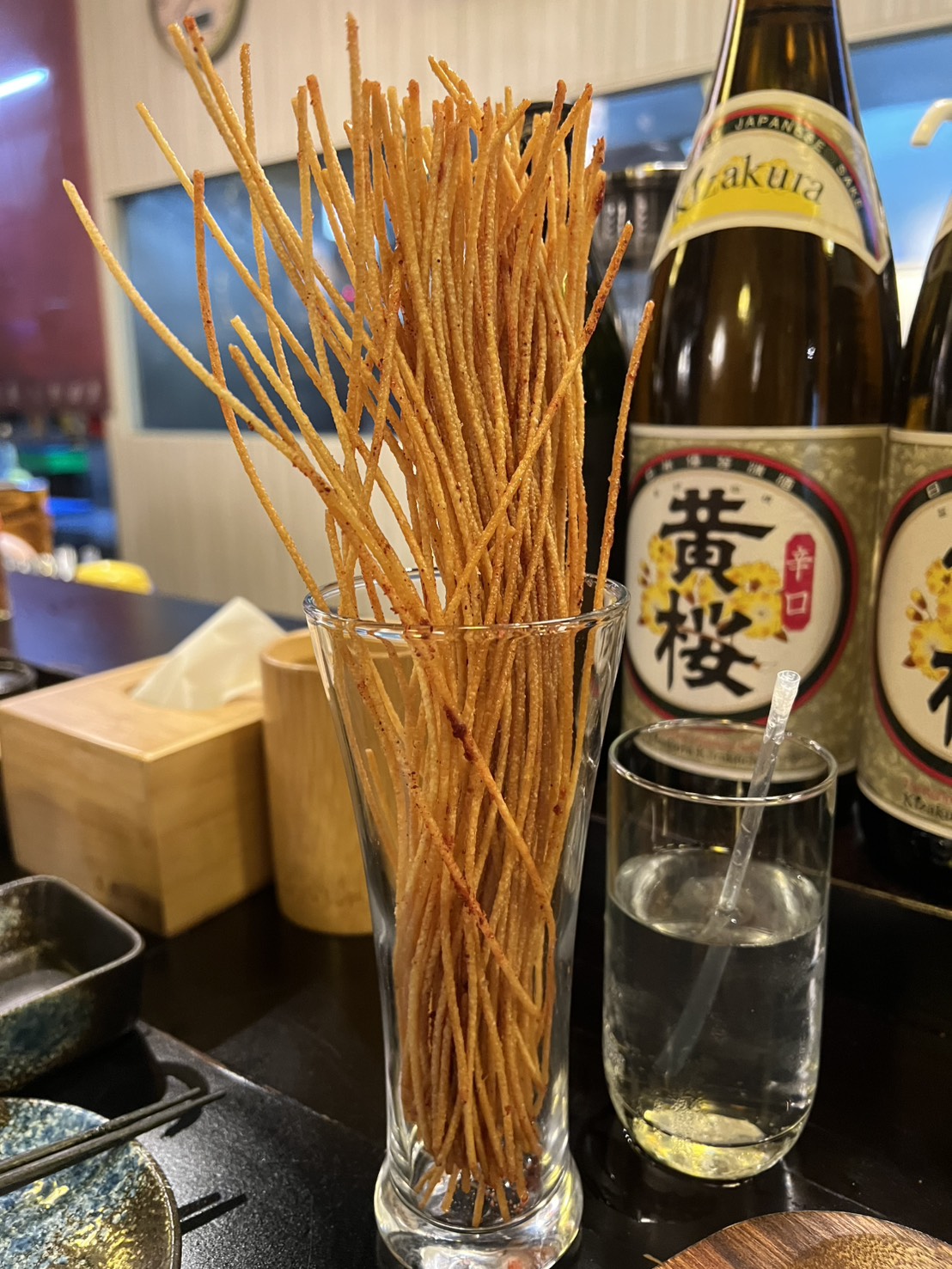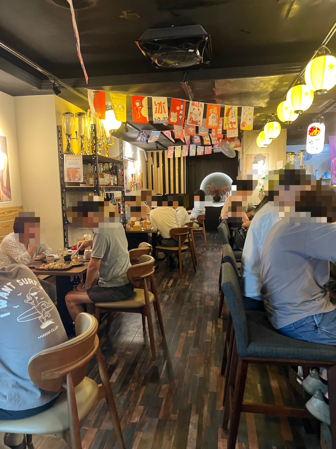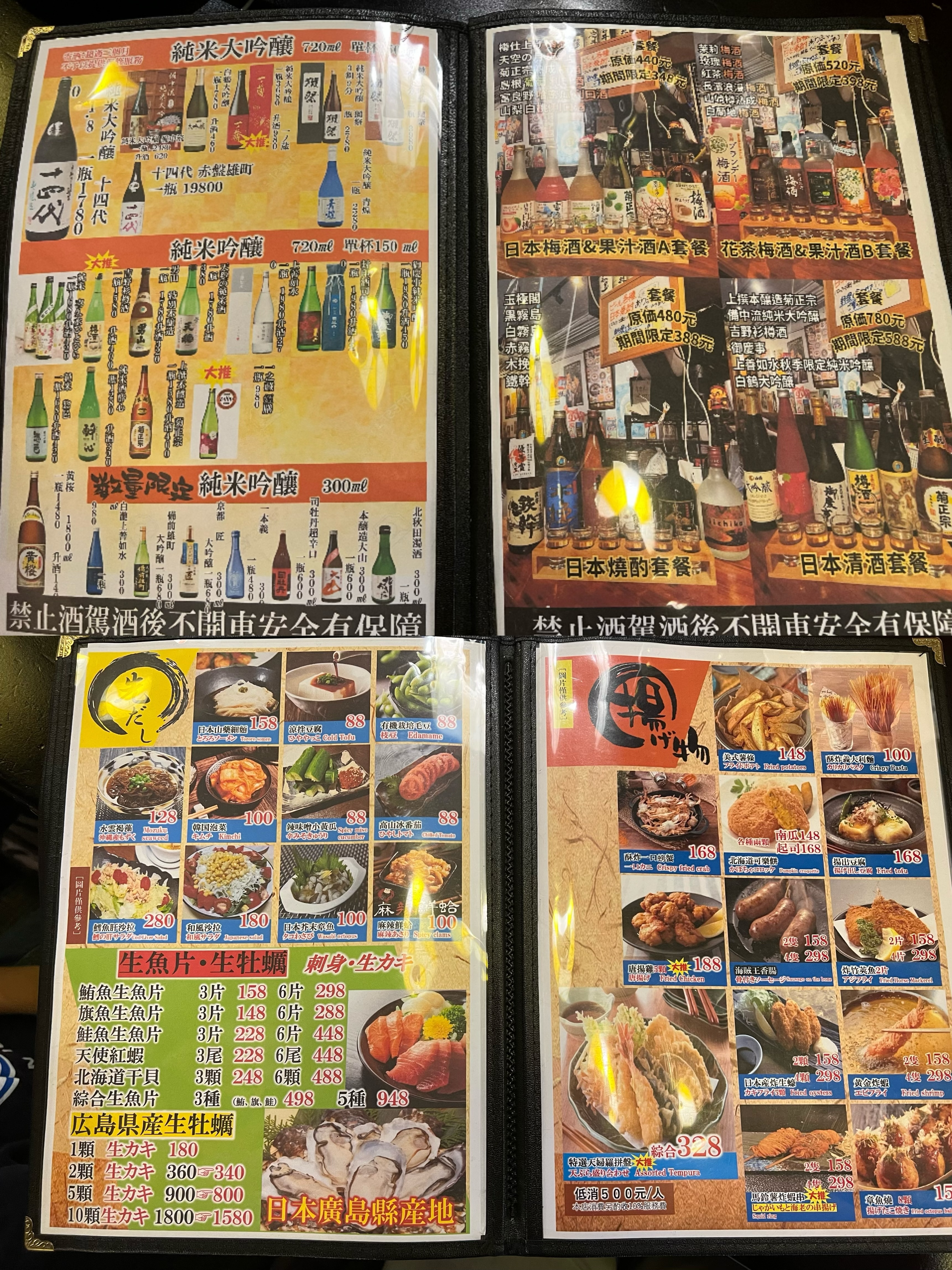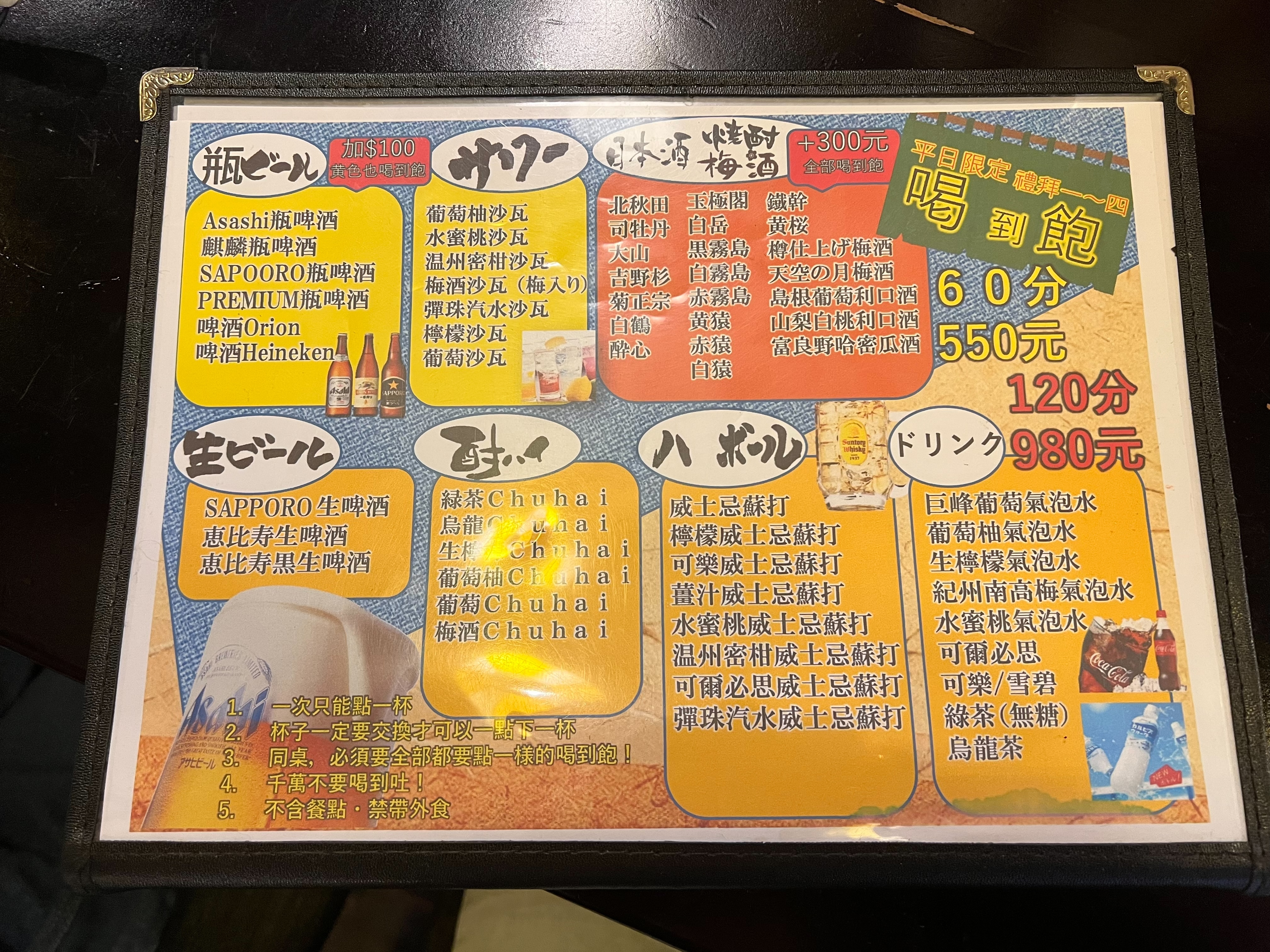 店裡牆上掛著各式酒瓶,坐在吧台前看著師傅準備食材,真的有在日本居酒屋用餐的感覺。平日晚上用餐時間人潮也非常多,很幸運地當天沒有訂位就有位置~