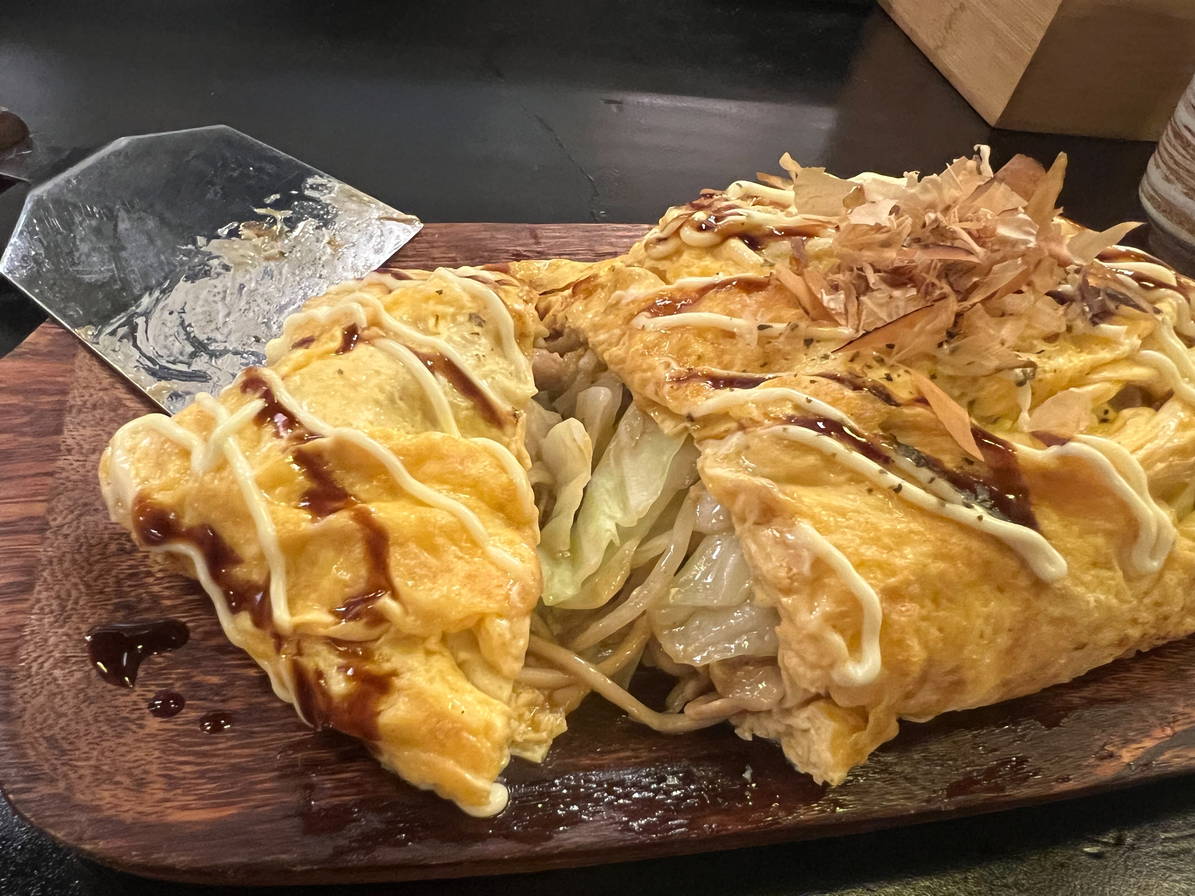 軟嫩蛋皮包著鹹香炒麵,醬香濃厚、份量十足。