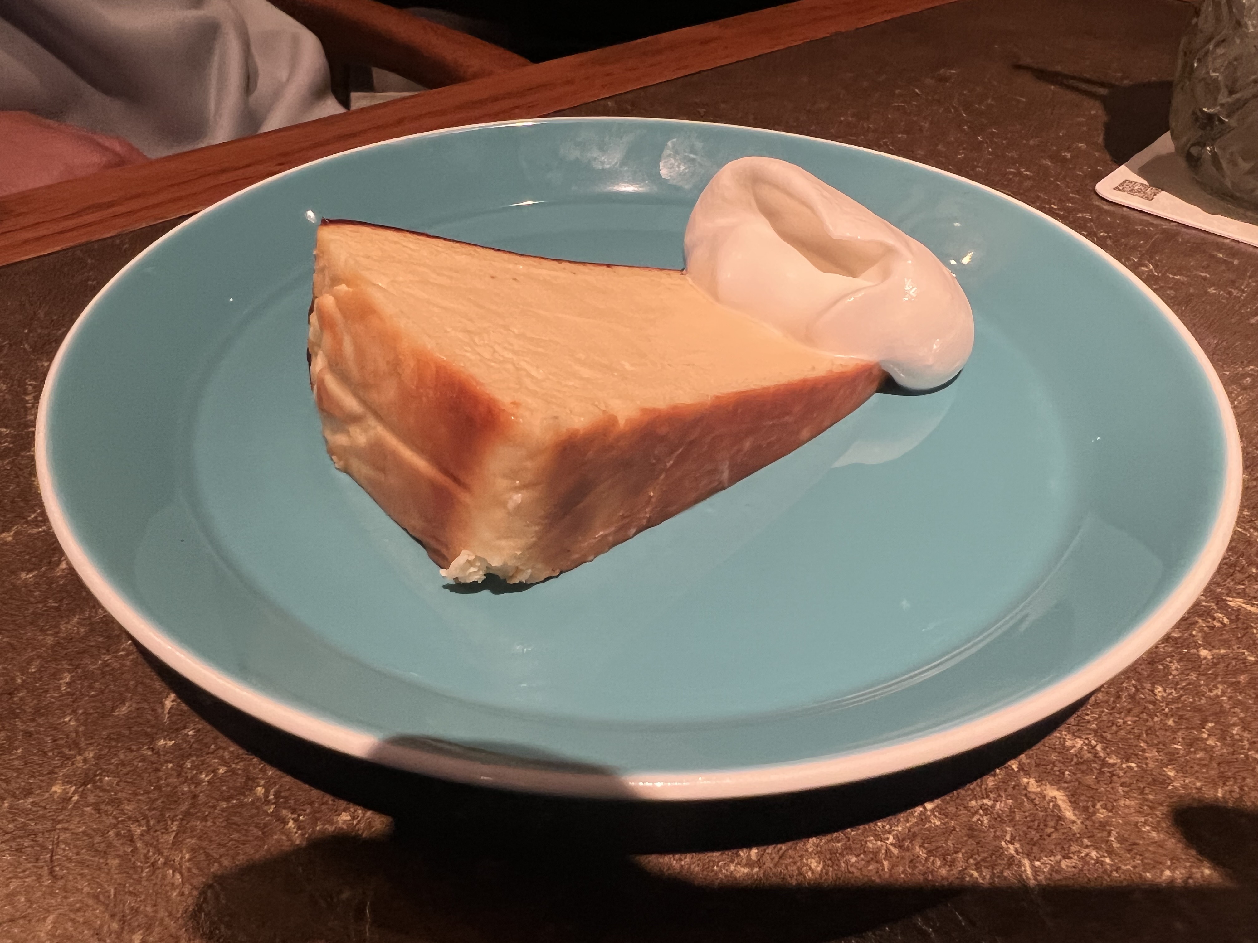 質地濃厚但不死甜,入口滑順,有點像介於巴斯克與日式輕乳酪之間的口感。搭配旁邊的鮮奶油剛剛好,一起吃會更順口。