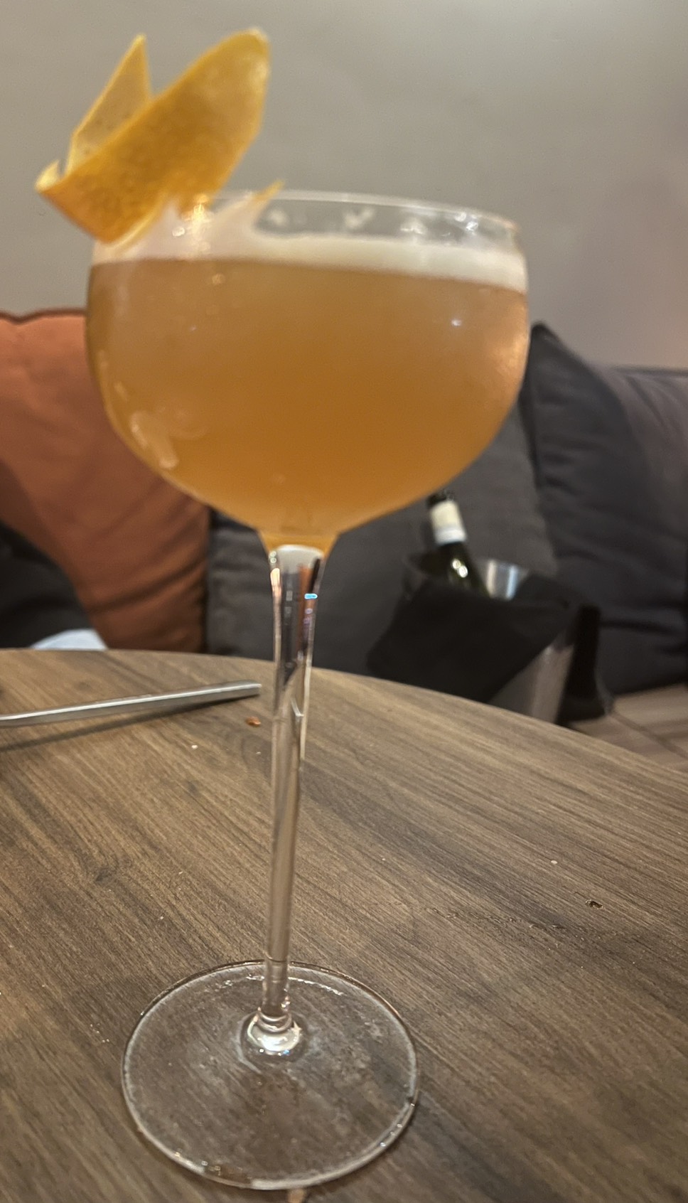 捷運中山站步行約 5 分鐘,位在小巷弄裡,不仔細看會錯過。外觀是沉穩木質色調,門面微低調,門口有長椅、盆栽點綴,加上柔黃燈光,整體氣氛很 chill。一進門就能感受到「小酒館的精緻感」座位不多、空間不大,但不會壓迫,反而有一種舒服的溫度,適合約會、朋友聚會,也適合兩個人想安靜吃點東西喝一杯。