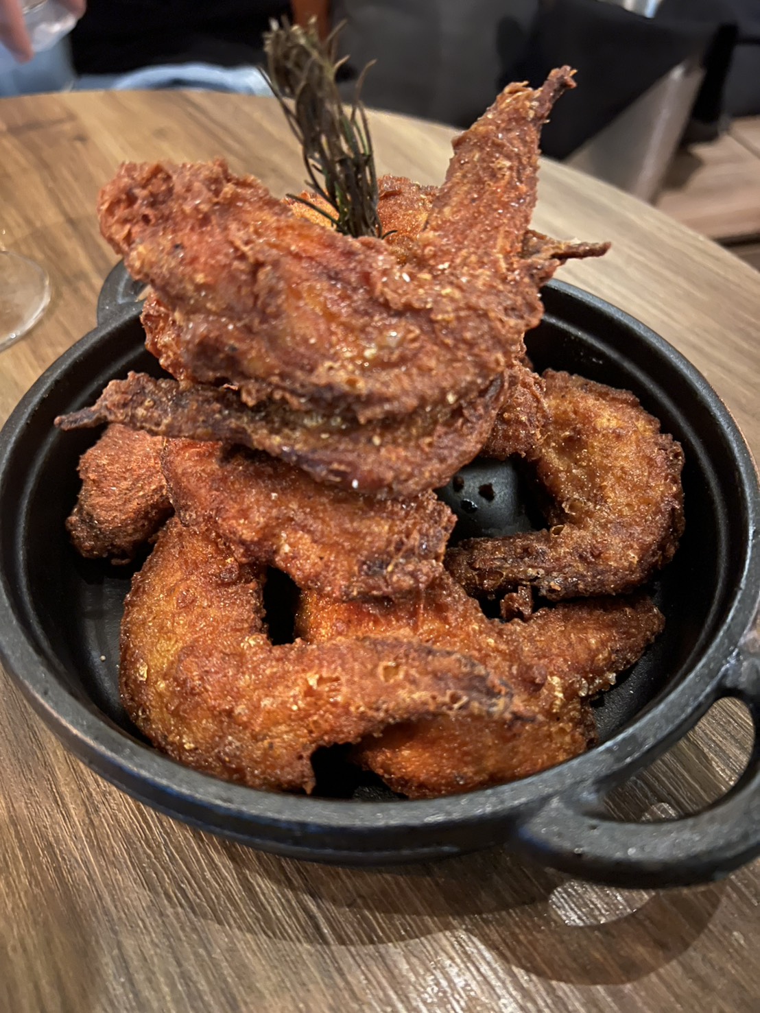 這道完全是我今晚的第一名!外皮炸得超級酥脆,但肉質保水度很好,咬下去噴汁,而且調味偏香料路線但不死鹹。不會油膩,也不會沾手太可怕,就是那種吃一隻會想接著再吃三隻的雞翅。
