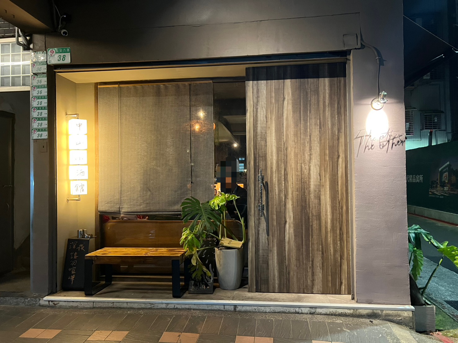 這家《 The Other Eatery 中山小酒館》 一直被我收藏在地圖裡很久,某天想找中山站附近的餐酒館、又不想人太多太吵,就決定直接衝一波。捷運中山站步行約 5 分鐘,位在小巷弄裡,不仔細看會錯過。外觀是沉穩木質色調,門面微低調,門口有長椅、盆栽點綴,加上柔黃燈光,整體氣氛很 chill。