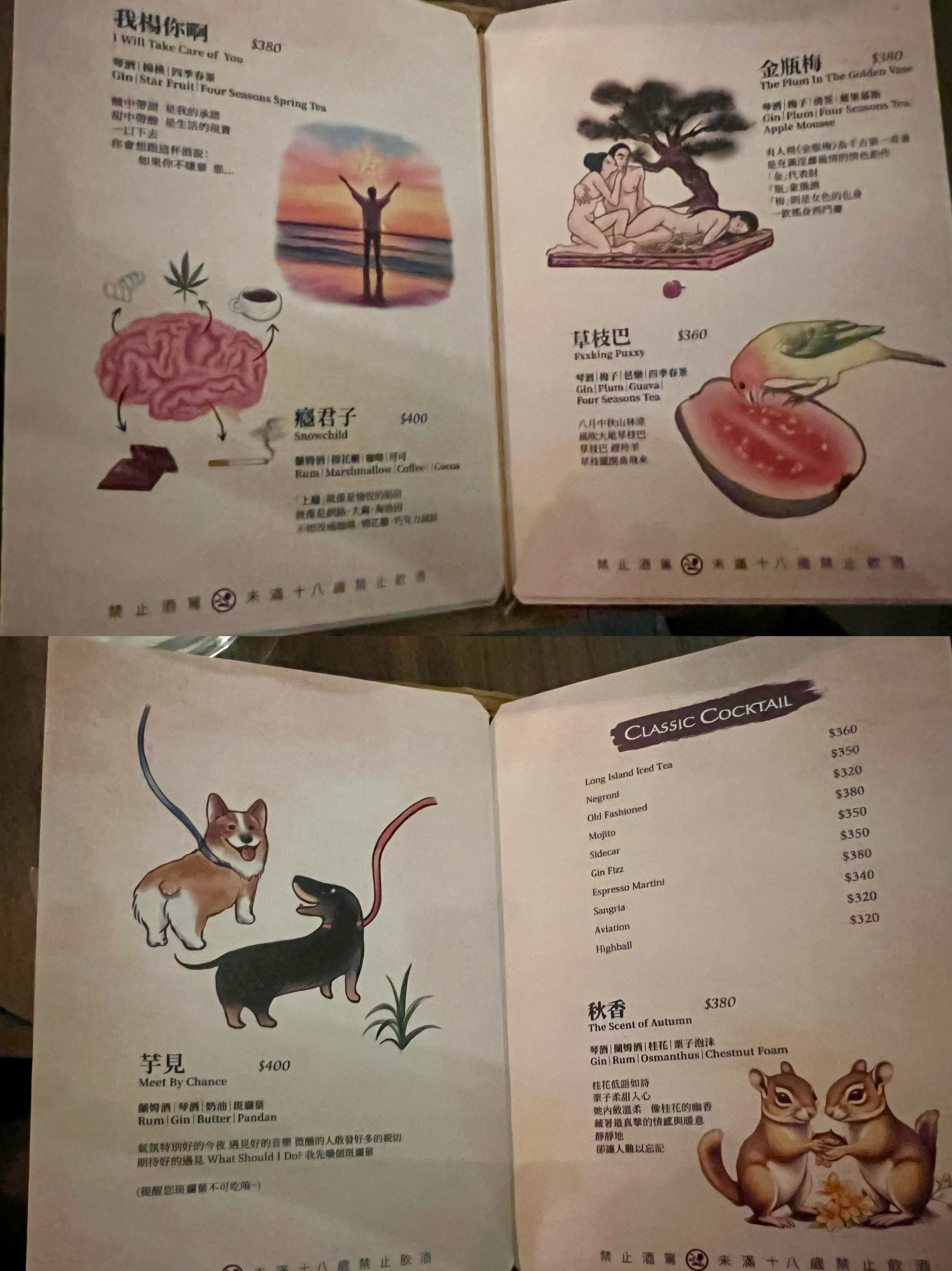 另外一個亮點是 酒單插畫很可愛!就算你沒點酒,也會忍不住翻一翻。