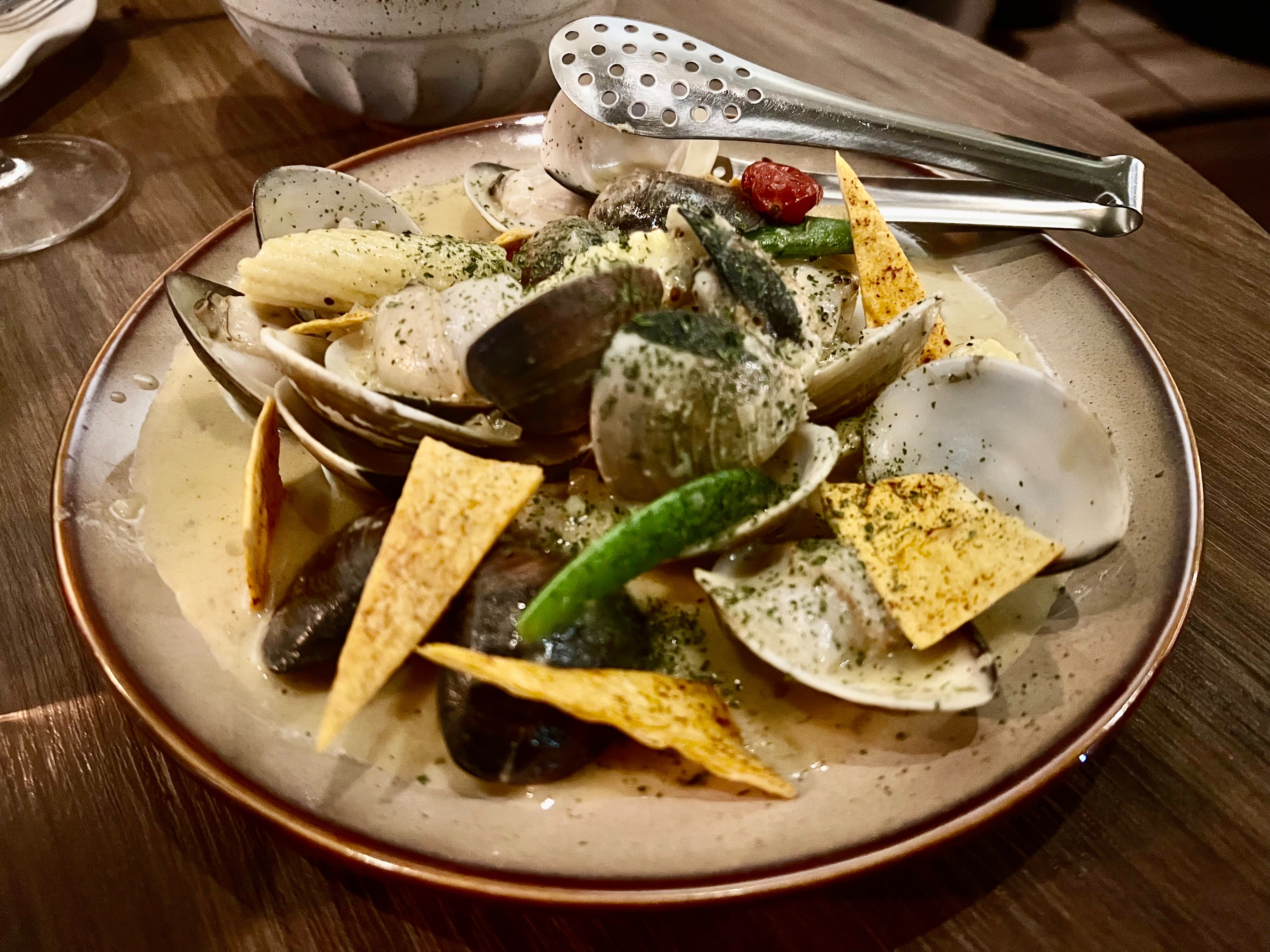 這道一上桌味道就超香!蛤蜊新鮮多汁、湯汁鹹香夠味,而且還貼心放了幾片類似墨西哥餅皮可以搭配,蠻特別的。