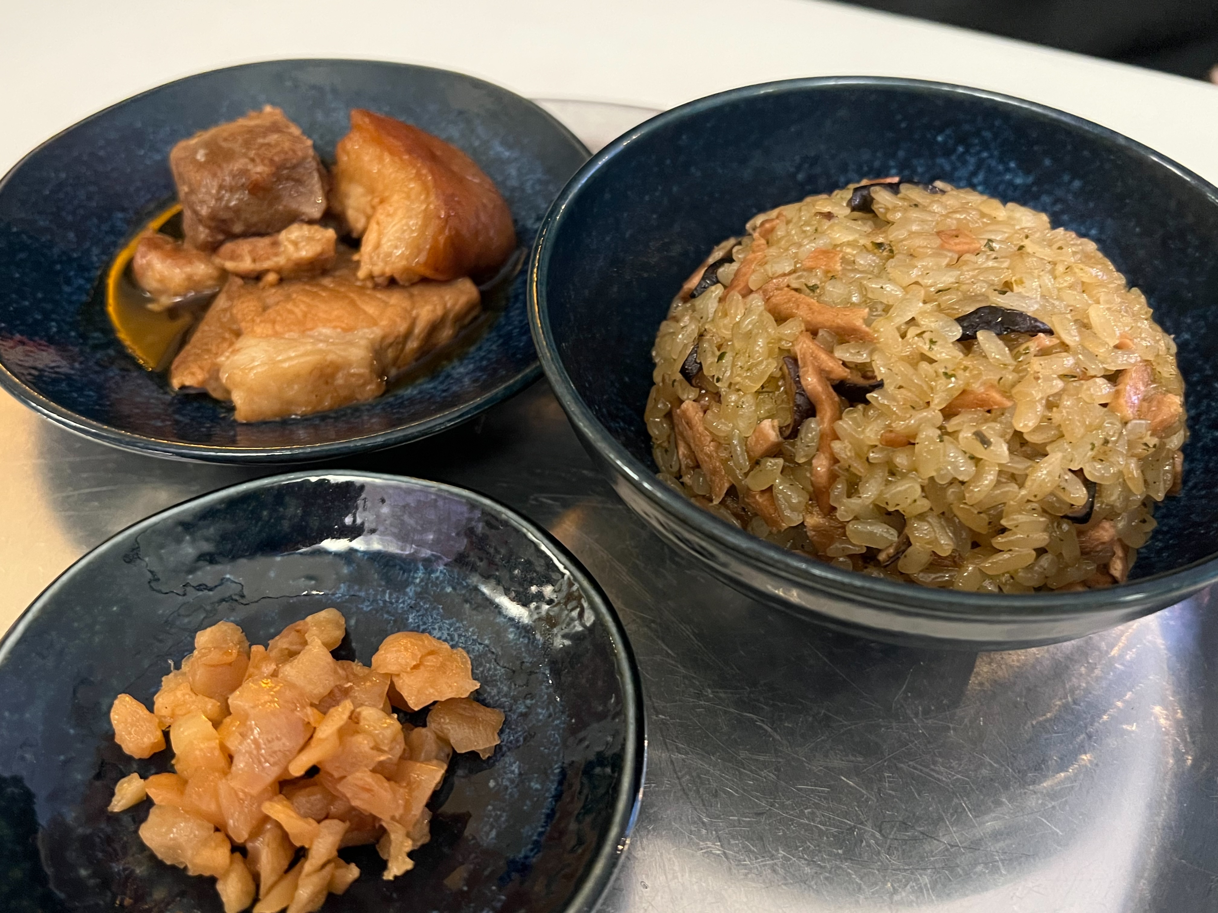 米飯粒粒分明,散發出醬油與香菇的濃郁香氣。配上一盤滷製控肉鮮嫩多汁入口即化,與油飯完美結合,能在舒服的咖啡廳裡品嚐就好滿足~