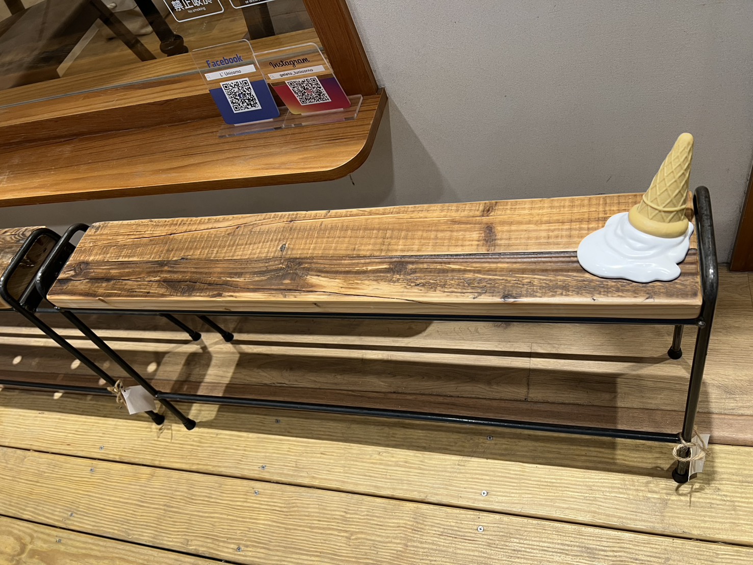 門口還有一個「假裝掉在地上的冰淇淋」裝飾,小小的巧思非常可愛,讓人一秒會心一笑。