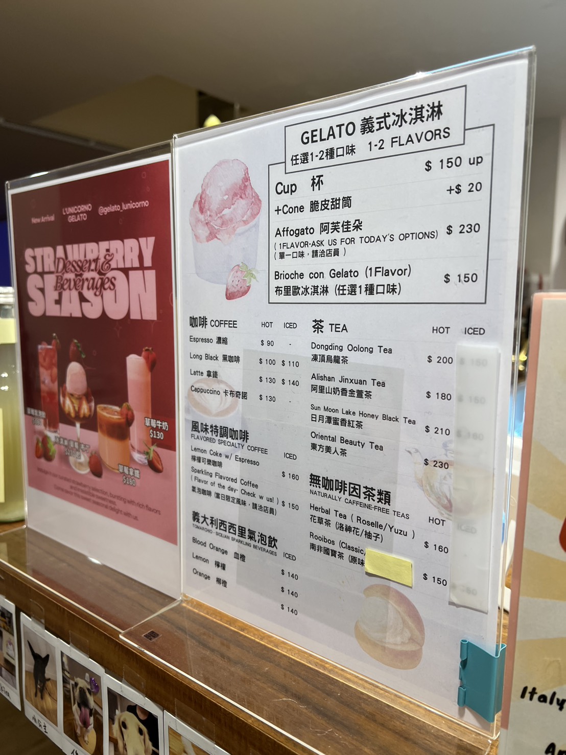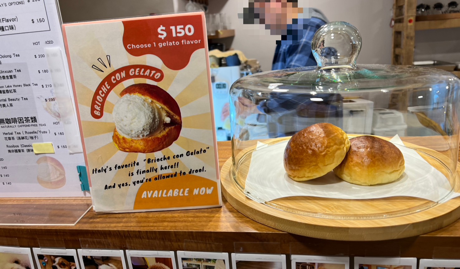 另外一個很加分的地方是,這裡是一間寵物友善的冰淇淋店。櫃台附近貼滿了客人帶狗狗來訪的大頭貼,店內也有一隻店狗,非常親人又可愛,小朋友和狗狗互動得很開心,整個空間多了一種很溫柔的生活感。