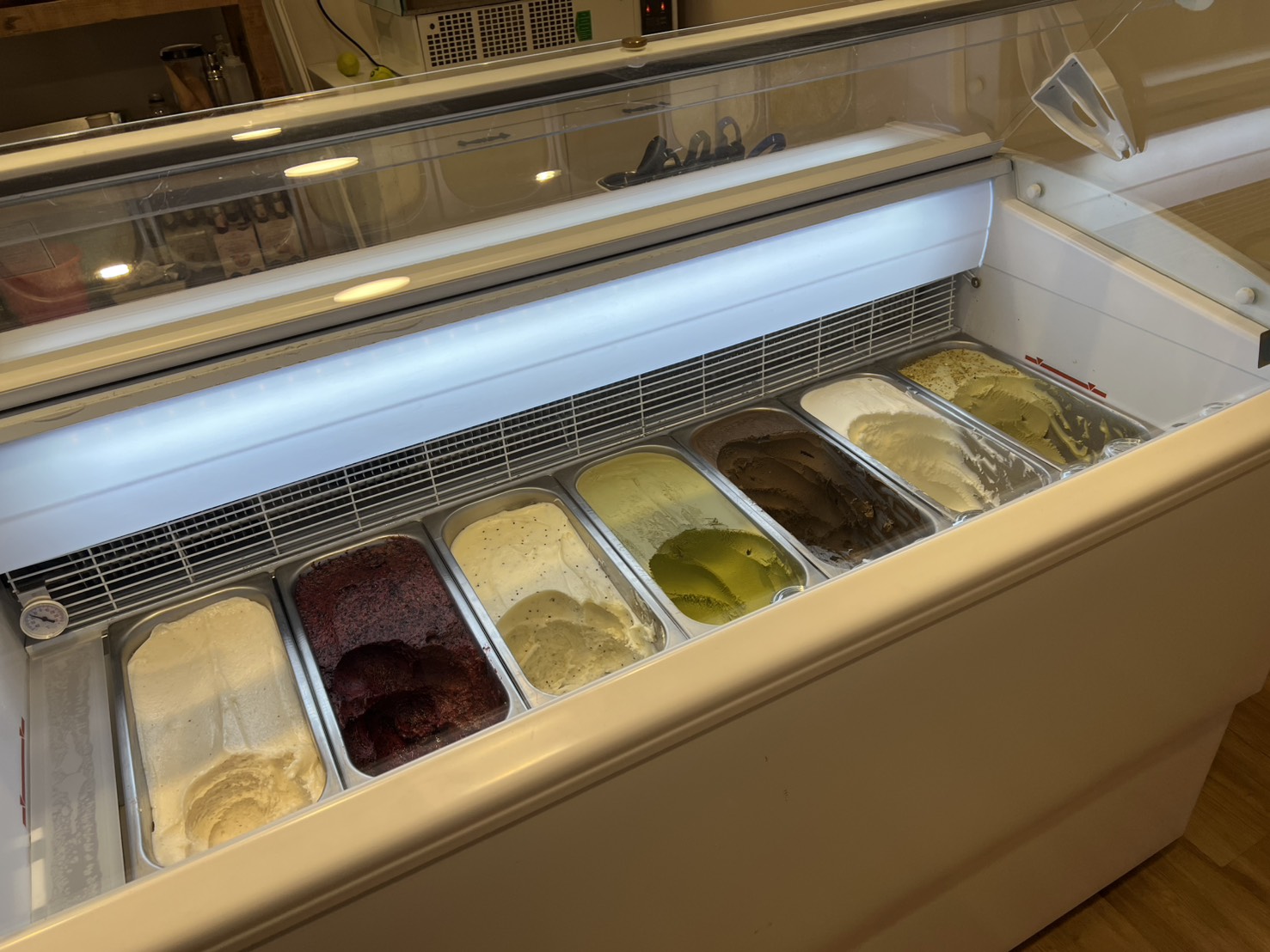 口味方面,有清爽系的水果口味,像是草莓、奇異果這類,也有經典不敗的開心果、香草等選項,走的是義式 Gelato 那種綿密、不會過甜的路線。