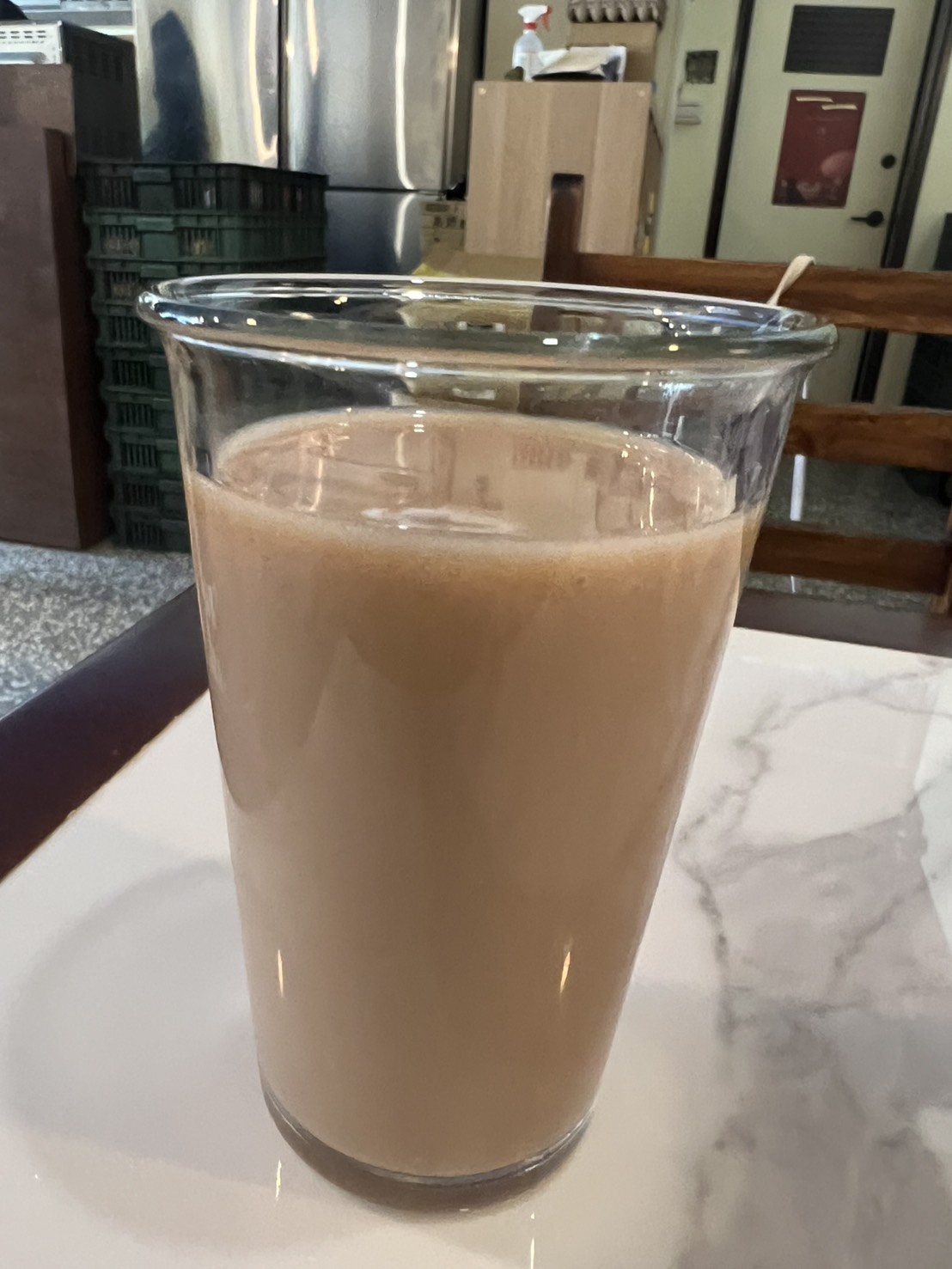 奶茶屬於偏淡型,茶味比奶味明顯,甜度不高。適合搭配有鹹味的餐包一起享用,不會太搶味。