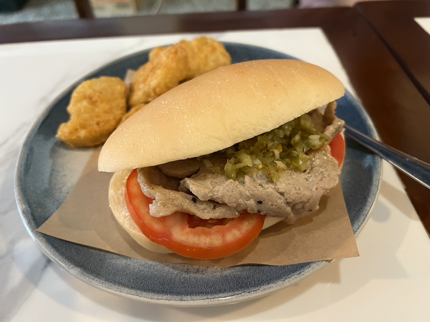 炸豬排外層酥脆、內層保有肉汁,厚度剛好。味噌濃醬帶著一點鹹甜味,搭配鬆軟餐包非常下飯(雖然是早餐)。整體調味不會太重,早晨吃起來也不膩口。雞塊外酥內嫩,是小朋友會喜歡的那種。