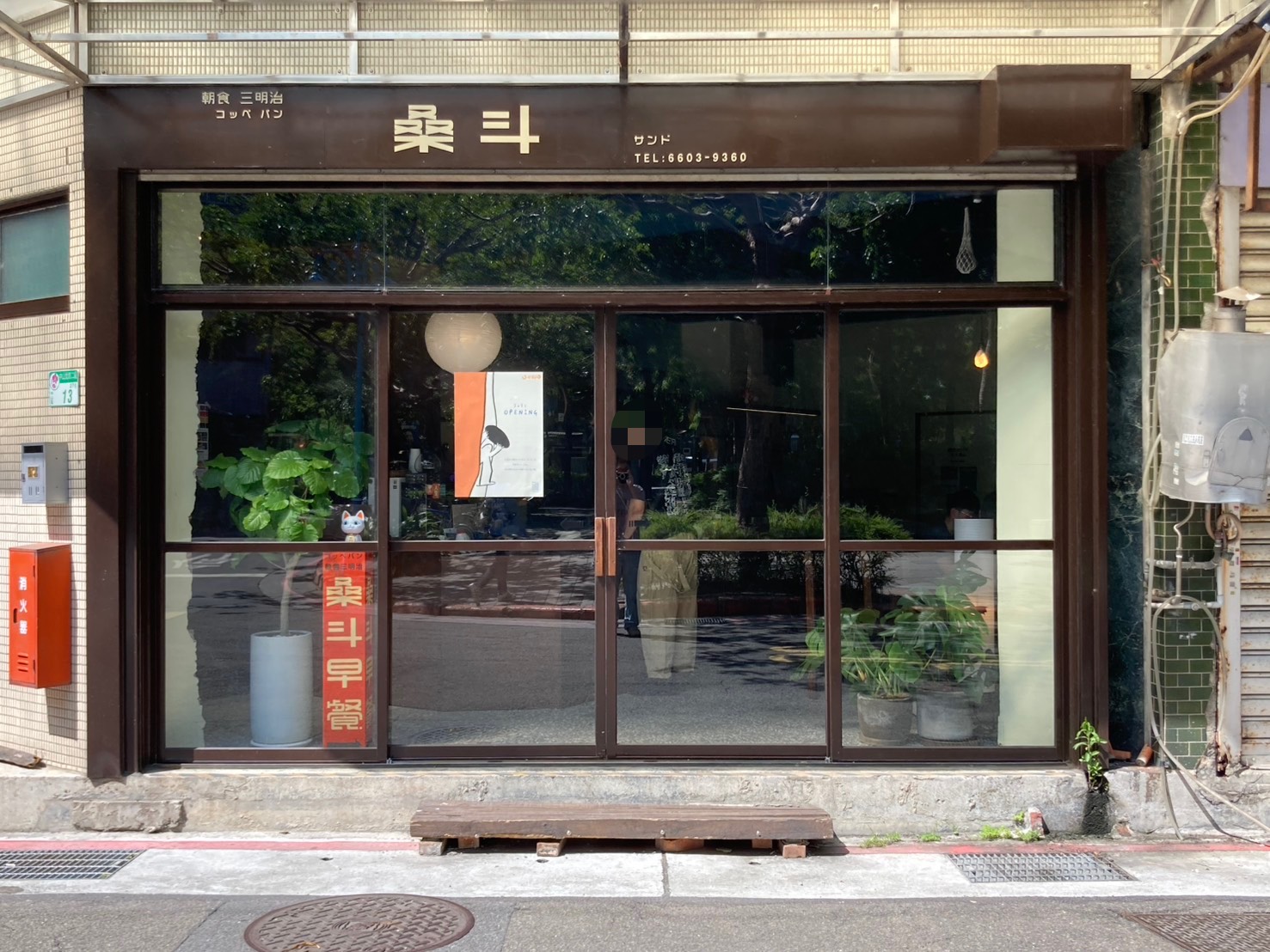 《桑斗早餐》坐落在捷運中山站附近、林森公園一帶,外觀充滿昭和感,溫潤的木頭色搭配低調可愛的日式字體招牌,看起來就像從日本街角搬來的一間早餐小店。這裡在網路上有著相當高的評價,是台北少見把「日式餐包」與「台式早餐」融合在一起的店。