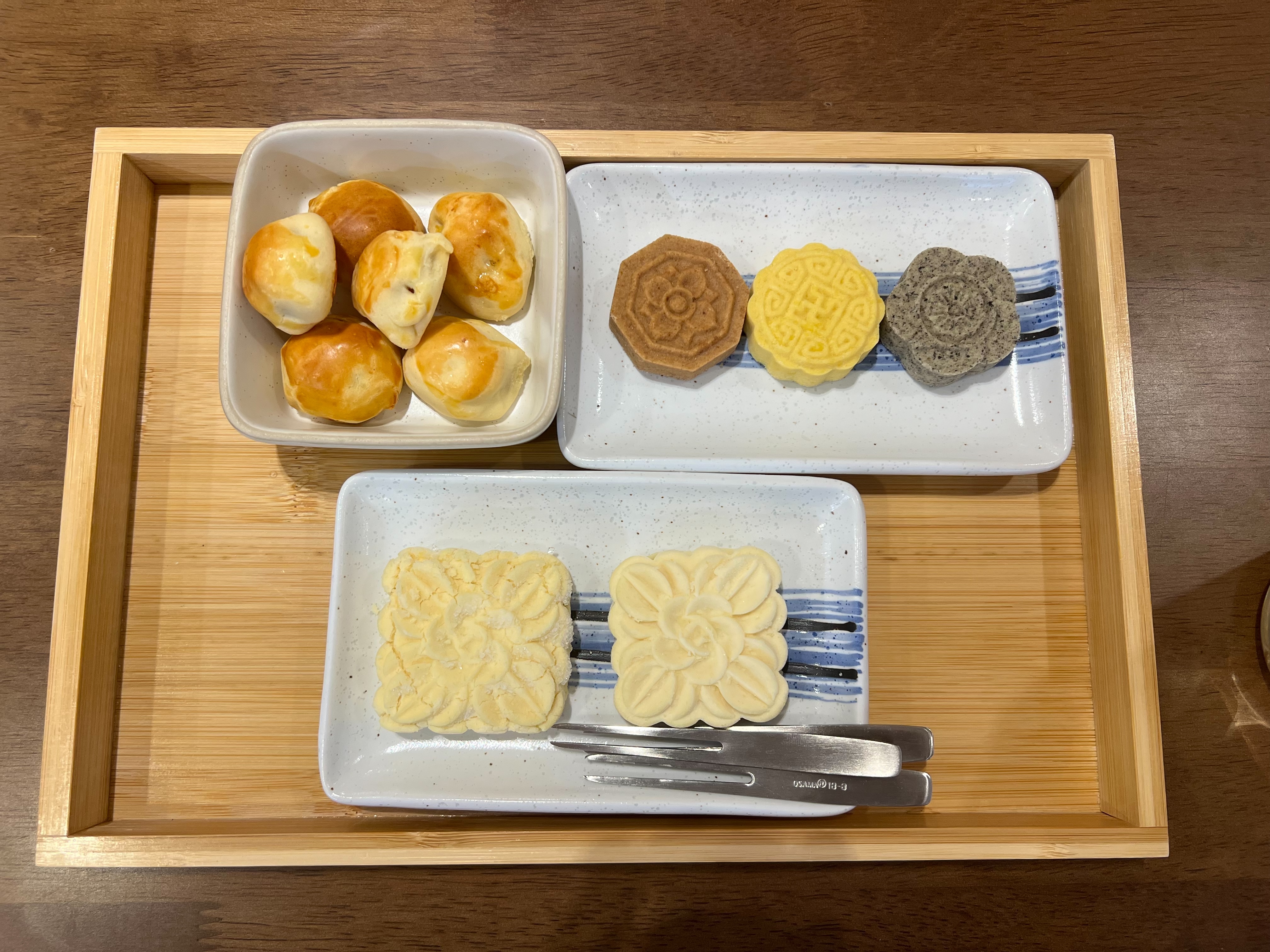 這裡的中式點心也不錯,綠豆糕細緻綿密,綠豆皇帶點顆粒感,口酥餅則是外皮微酥,裡頭有淡淡豆沙香氣,很適合配茶一起享用。