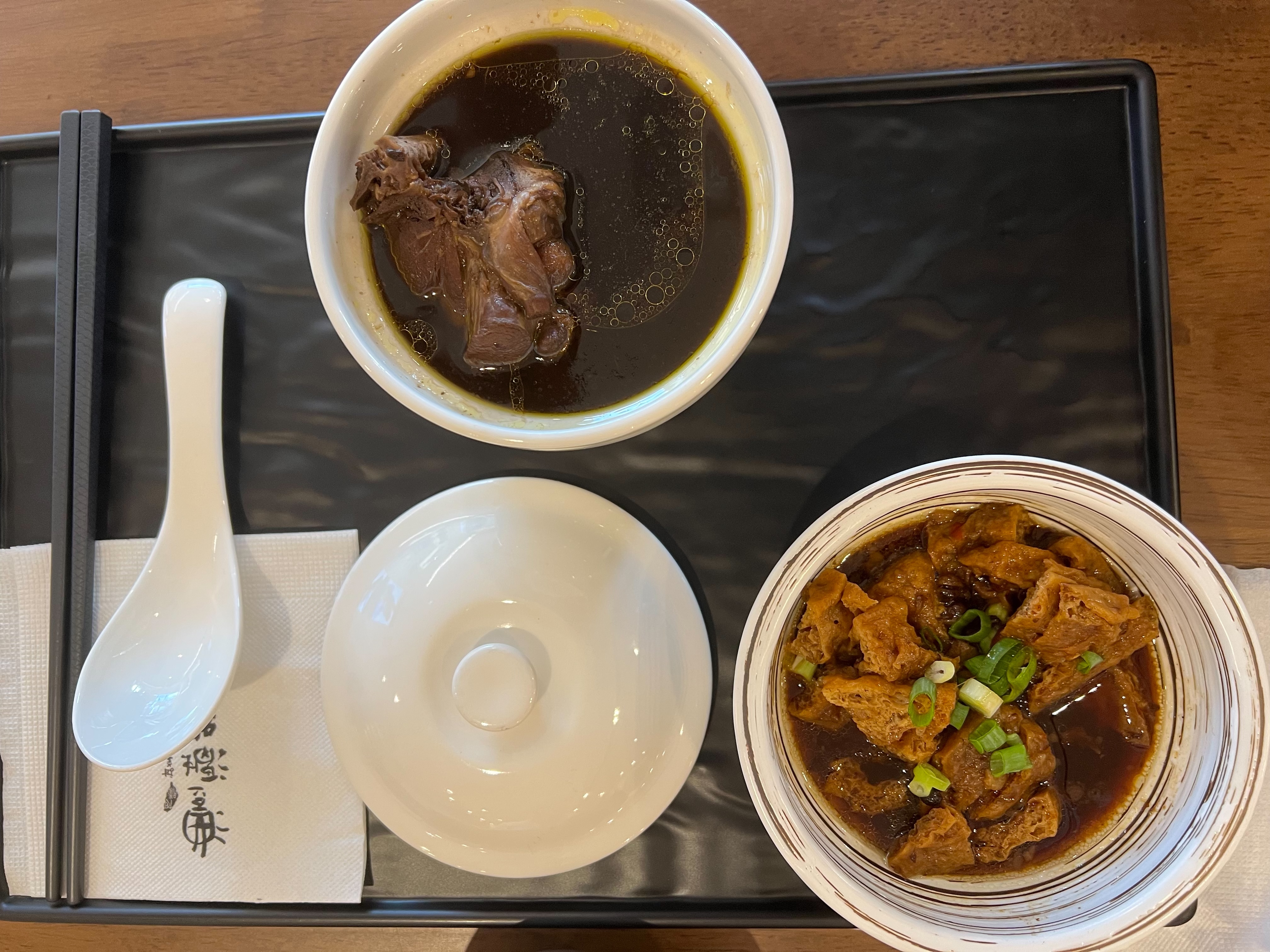 花干滷得很透,口感帶點韌性,咬下去充滿醬香。何首烏雞湯則是滋補系路線,湯頭帶有淡淡藥材香氣,雞肉燉得軟嫩,適合天氣冷的時候來一碗暖身。