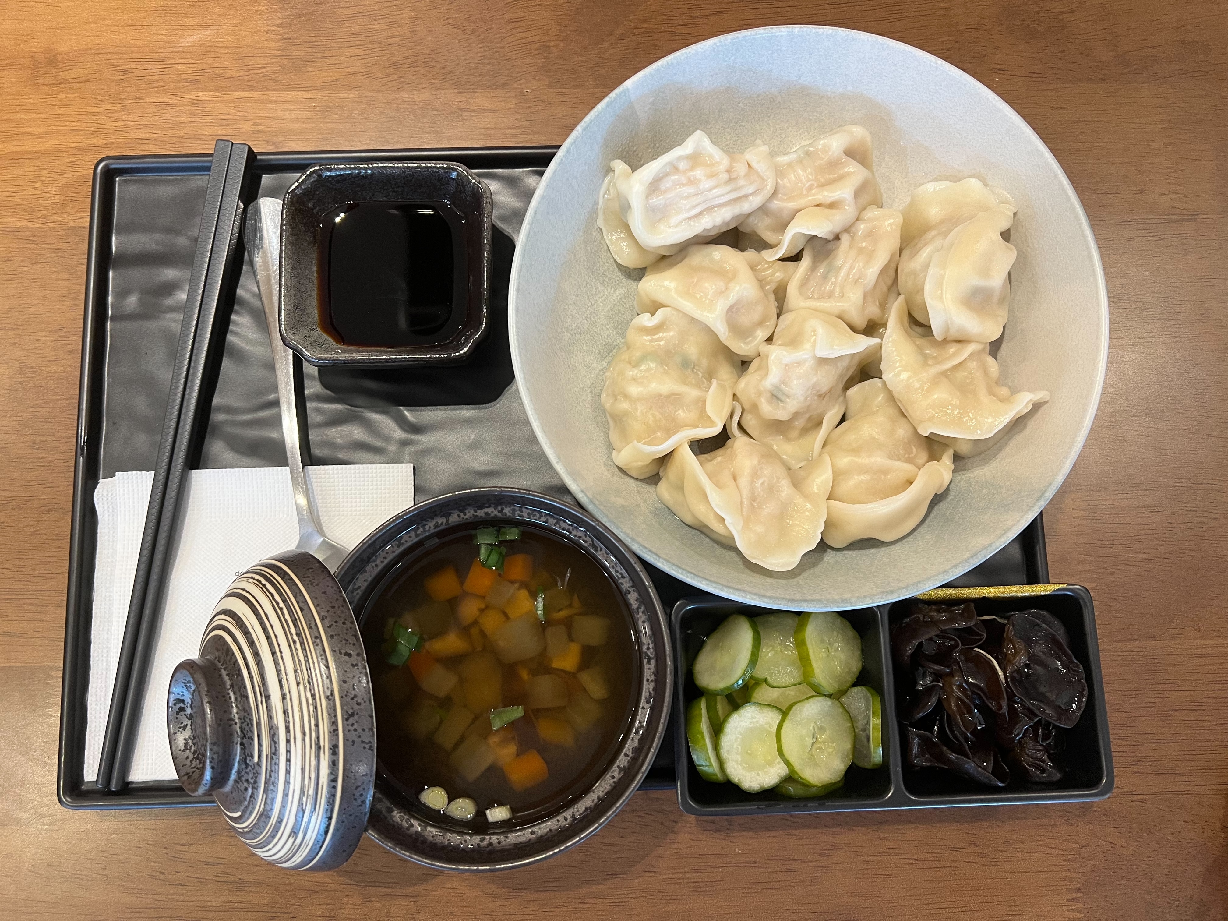 水餃個頭不小,皮Q餡多,咬下去可以吃到高麗菜的脆甜與豬肉的鮮香。搭配的小菜和湯一樣走清爽路線,是那種家常卻耐吃的好味道。