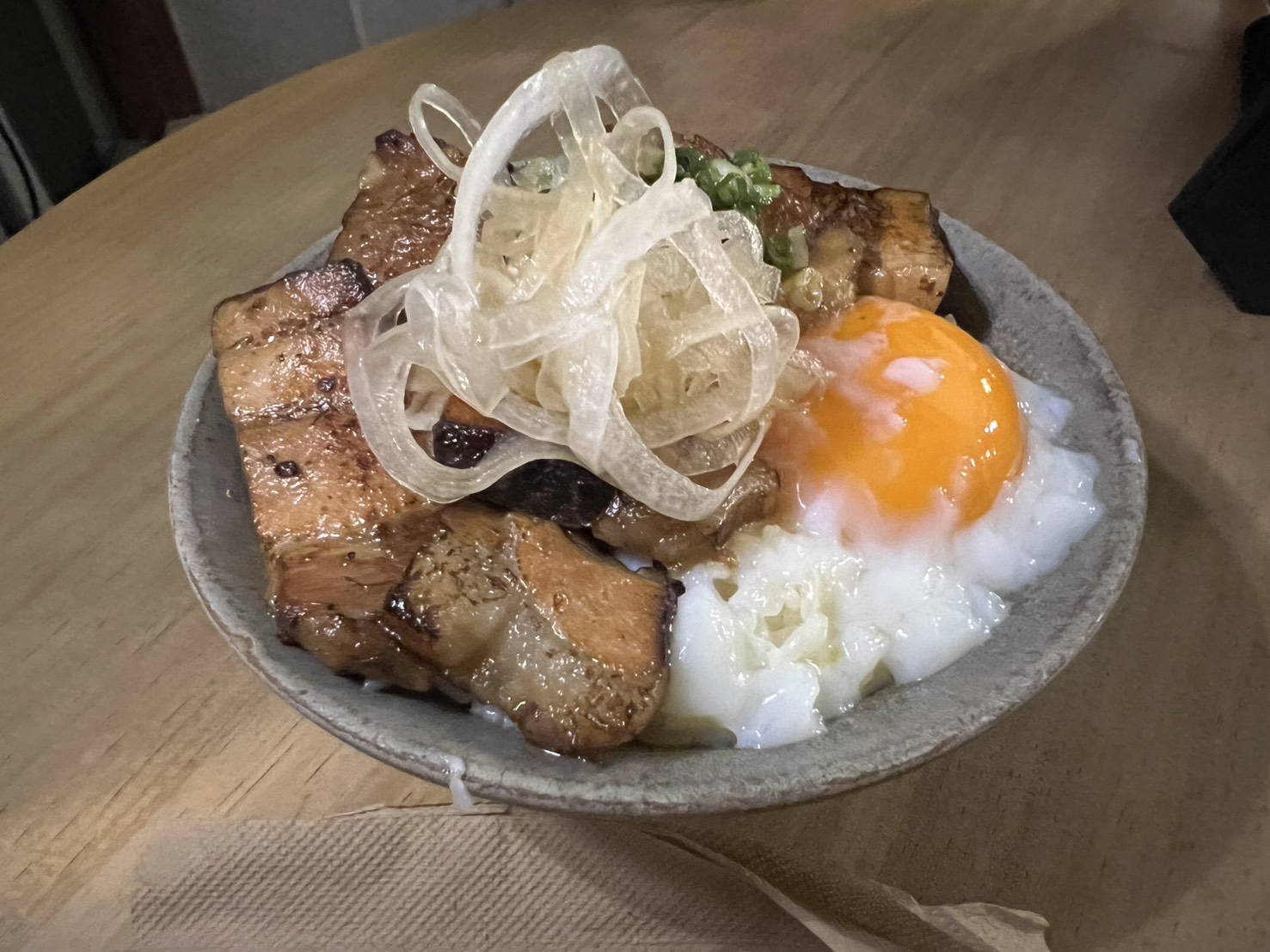 炙燒豬肉香氣很足,五花肉油脂豐富但不會過膩,搭配水波蛋一起吃口感更滑順。花椒粉帶出微微麻香,整體調味滿有層次,是一道會讓人默默吃完的主餐。