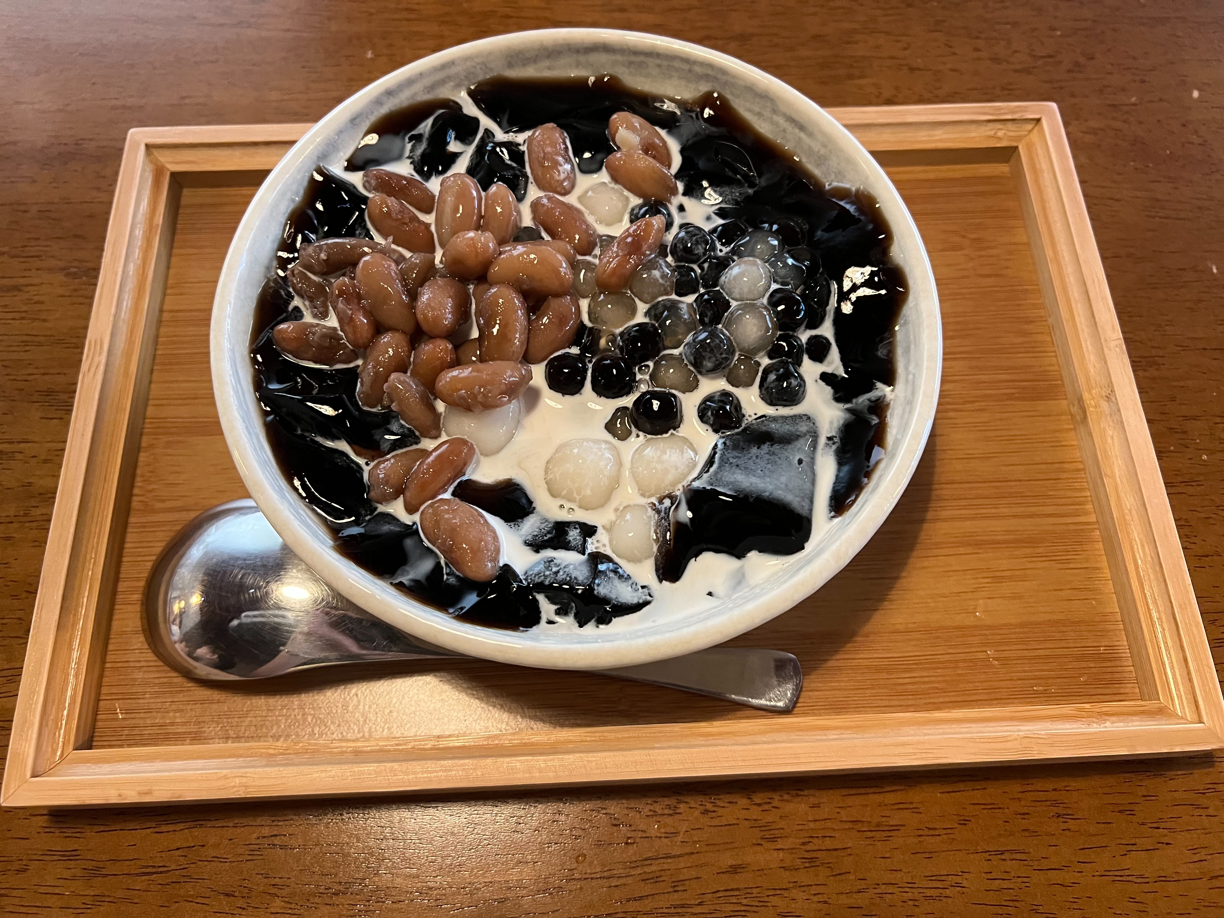 我選了小紅白湯圓、小白玉黑珍珠、還有花豆。仙草凍本身帶有淡淡的草本清香,滑嫩入口很順口;小紅白湯圓軟Q不黏牙,珍珠口感Q彈,花豆則是甜而不膩,搭配糖水的清甜感剛剛好。整碗吃下來清爽解膩,在炎熱的天氣裡真的超消暑!