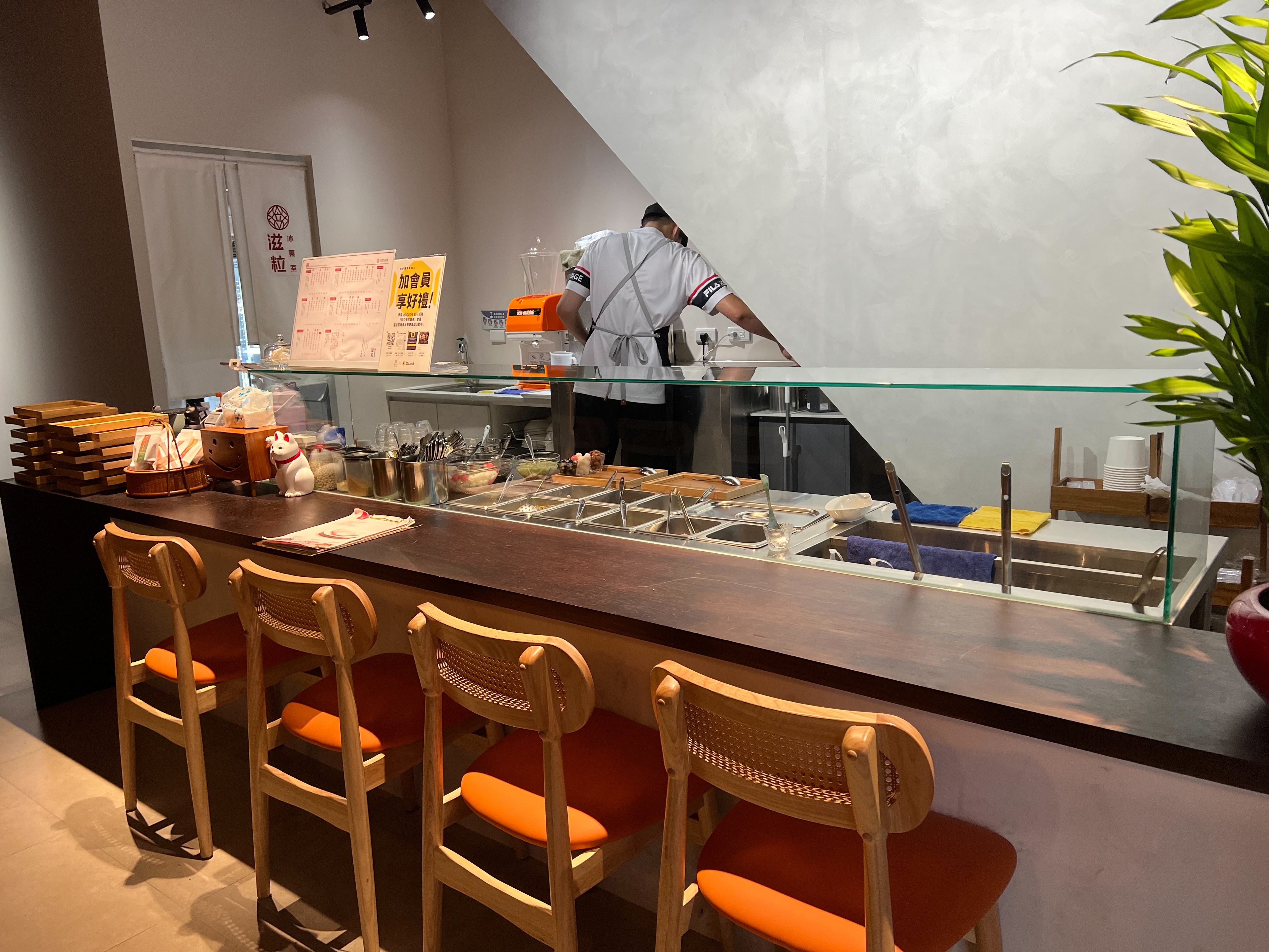 一進門,右手邊就是點餐櫃檯兼備料區,我們邊點餐邊看店員現場製作冰品,乾淨又透明,讓人很放心。